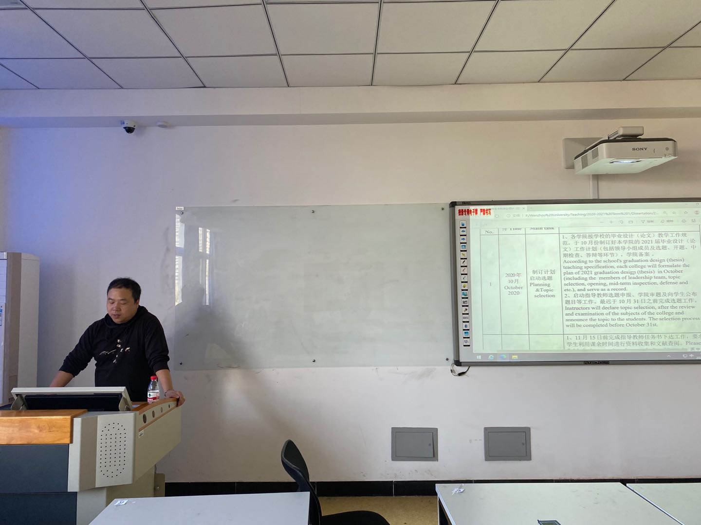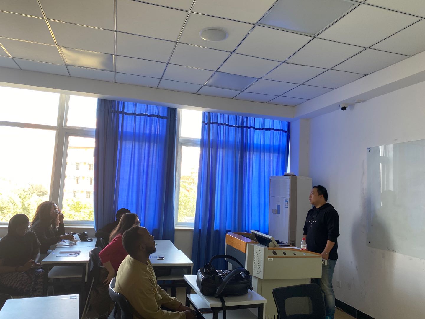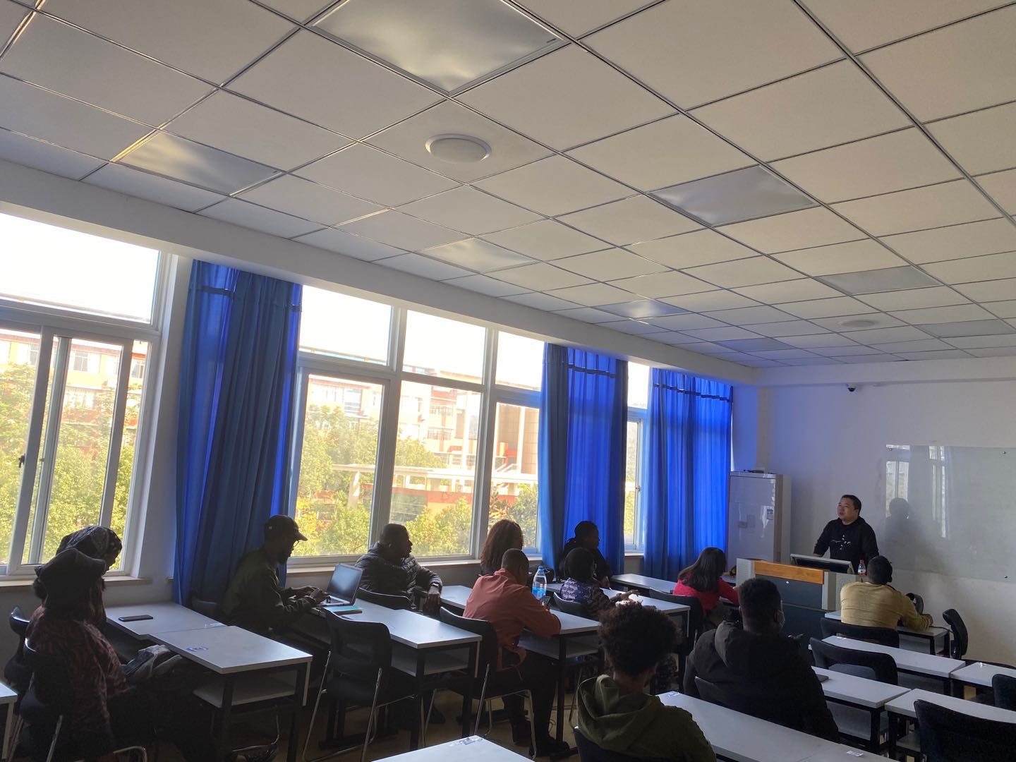 国教部2021届留学生毕业论文和实习动员大会在北3-308教室召开。本次动员大会由国教部主任徐正主持。由于疫情的影响,此次会议主要由在校的17名国贸留学生参加,境外的32名学生将通过视频录播的形式发动和告知学生相关事宜。
