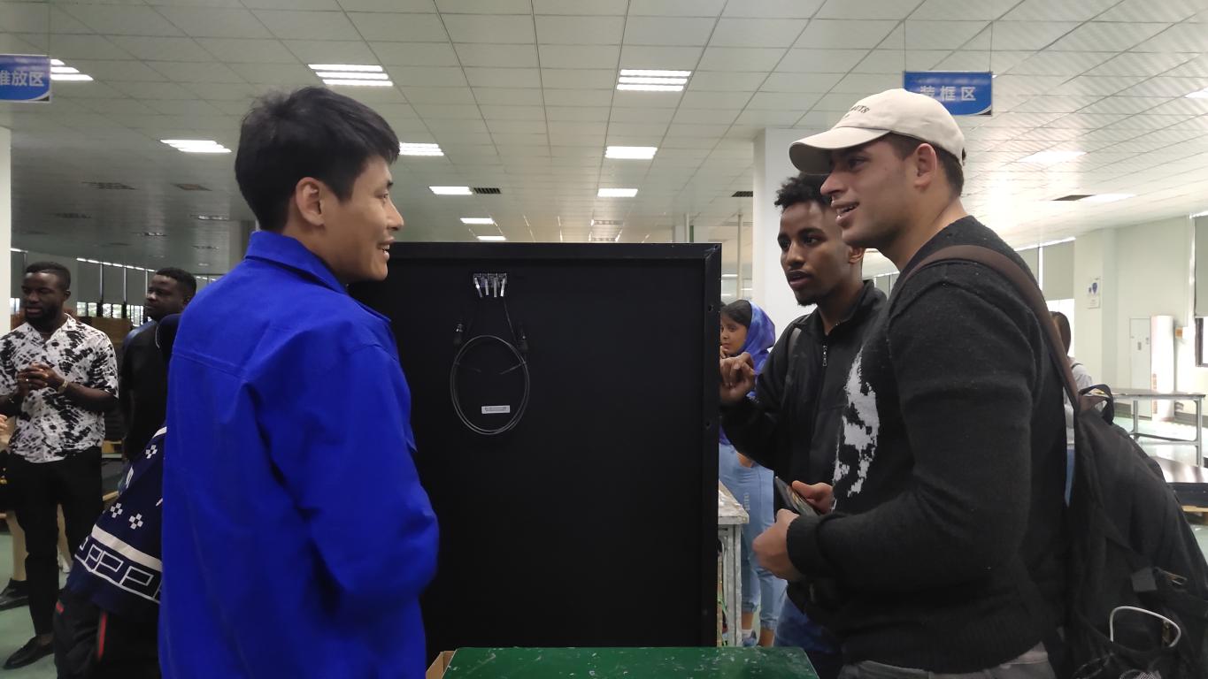 在腾腾公司有关人员的全程陪同解说中,同学们参观了生产车间和产品展示间,对腾腾公司的产品表示出了浓厚的兴趣。随后,同学们集中在腾腾公司会议室,听取了公司外贸部员工对公司发展历程、公司结构以及产品的研发、对外市场的开拓和国际市场的销售情况等所作的非常详尽的介绍。国际生们就他们关切的问题踊跃提问,现场气氛热烈。最后,腾腾公司陈总表示欢迎我们的国际生前往公司实习。