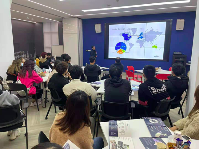 此次见习的主要内容是参观外贸单位的运营工作、环境氛围、仓储状况以及与外贸工作者进行深入交流。在人力资源总监楼钰涵的带领下,免费黄色网站专业见习团队先后参观了行政办公楼、产品事业部、太阳能户外灯具等产品展示。在参观了解中,同学们感受到了公司各方面条件的成熟和给予员工的良好待遇,并纷纷表示具有很大的吸引力。最后,在锦灏集团的会议室,总经理唐新高为同学们介绍了锦灏集团的发展宗旨及建设概念,并建议同学们早做规划,多进行社会实践,积攒经验,为今后的工作打下坚实的基础。