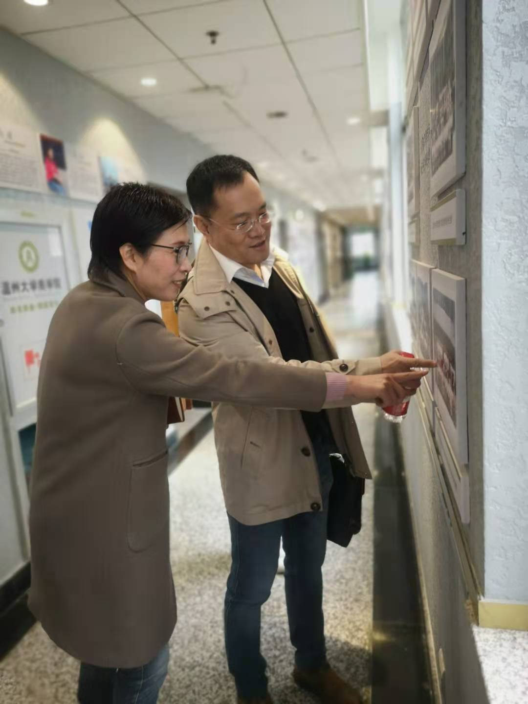在学院文化长廊,面对昔日的照片拾起了光阴的印记,莫欣校友也表达了对母院深深的感情,表示未来也会继续支持母院校友工作,并衷心祝愿母院越来越好。