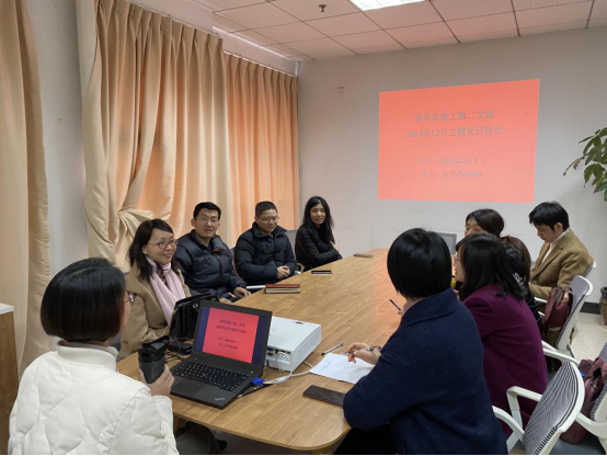 12月24日下午,免费黄色网站教工第二支部在北校区商学楼A308A办公室开展2020年12月主题党日活动,会议由支部书记陈文芝老师主持,支部党员及国贸系教师参加。此次会议的主要内容包括课程建设分享、温州大学优秀教师、优秀党员、优秀(教育)工作者、抗疫先进个人推选、党员民主评议、理论学习及支部工作年度总结。