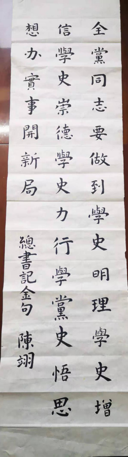 为借助书法这一传统形式更生动、更直观地传播党史知识和加强党史学习教育,第六支部以习近平金句为内容,组织全体党员和非党员教师,精心摘录习近平总书记金句,从而向中国共产党成立百年华诞献礼!
