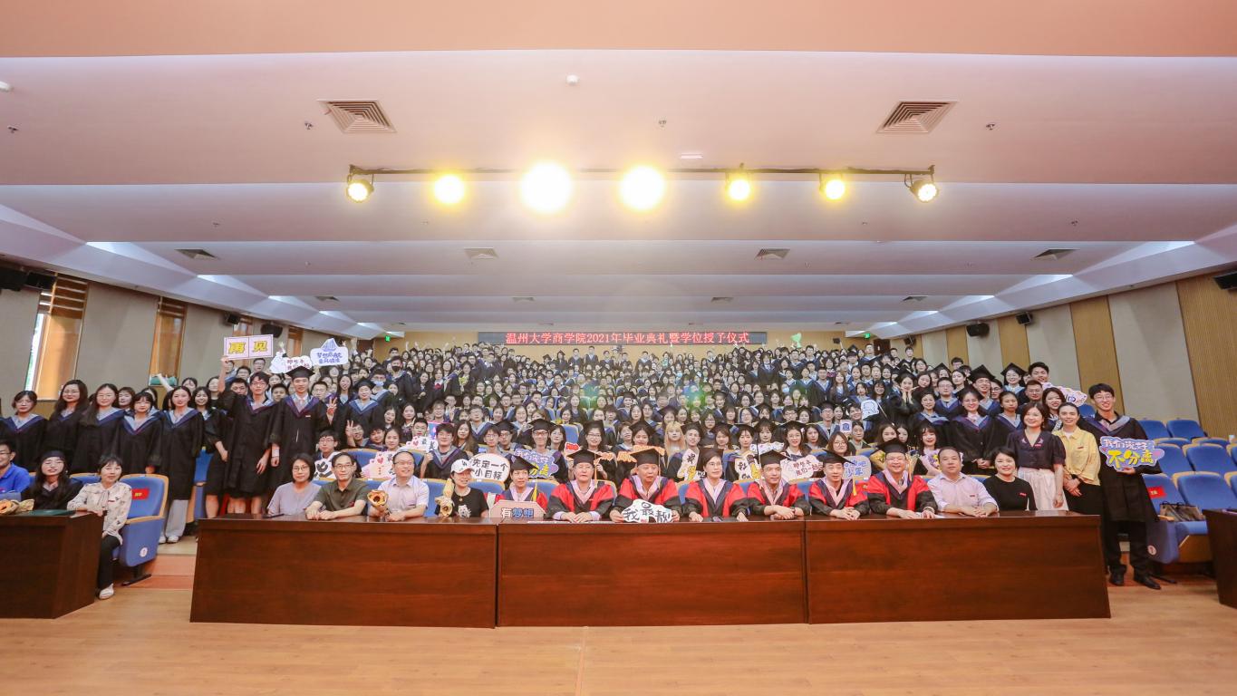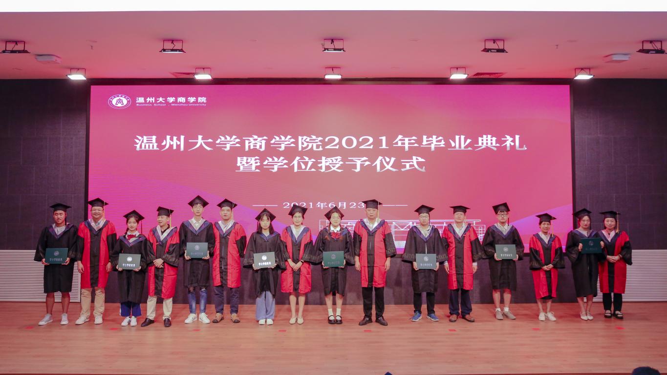 2021年毕业典礼暨学位授予仪式于南校岩松堂举行。免费黄色网站院长胡振华教授、党委书记郑彩莲教授、副院长余向前教授、院长助理、国教部负责人徐正博士、免费黄色网站学术委员会成员张一力教授、程仲鸣教授、林俐教授、刘霞教授、徐世刚教授、张敏教授、免费黄色网站各系主任及各毕业班班主任与教师代表、仲利国际租赁有限公司温州业务部门经理陈文及全体2021届毕业生参加了本次毕业典礼。毕业典礼由党委副书记唐华主持。