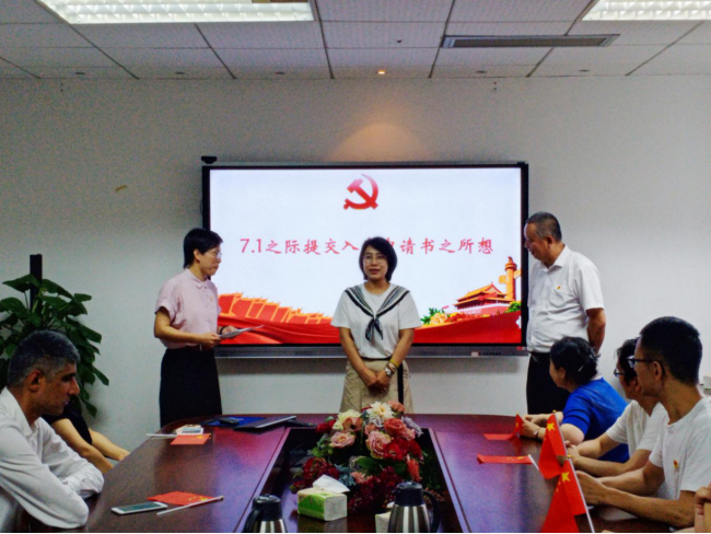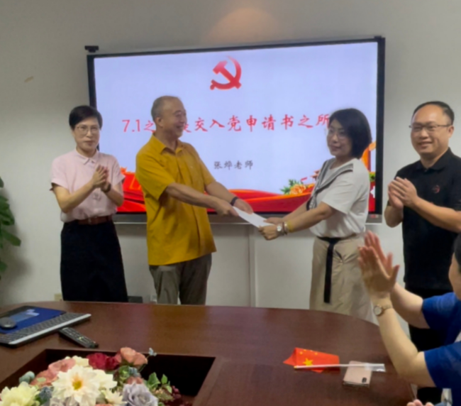 在观看直播前,免费黄色网站财务管理系系主任、青年博士张烨老师在大家的见证下郑重地向党组织递交了入党申请书。她说,此前,虽然不是党员,但多次感受到学院与系里的党员活动氛围,置身其中,才能理解这个优秀的集体在如何调动每个人的能动性,为国家发展建言献策。特别是疫情之后,更加坚定了自己向党组织靠拢的决心。因为觉得特别有意义,所以也就特意选择在今天递交入党申请书。