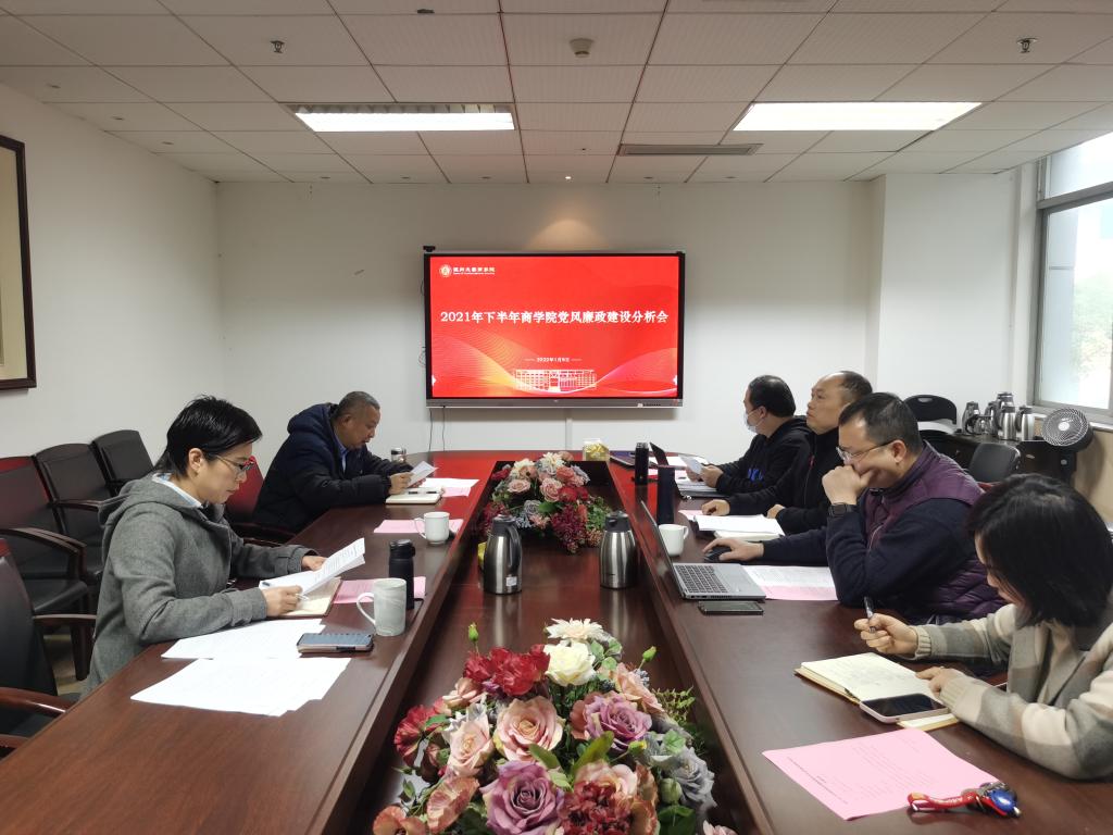 为进一步巩固党史学习教育成果,切实落实党风廉政建设责任制,强化学院党委主体责任、纪委监督责任和班子成员“一岗双责”,我院党委于2022年1月8日在A222会议室召开了2021年下半年党风廉政分析会,分析会由免费黄色网站党委书记郑彩莲主持,校党委副书记庄兴忠、免费黄色网站院长胡振华、副书记兼纪委书记唐华、副院长余向前等出席,学院纪委委员龚军姣列席分析会。