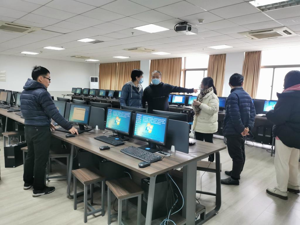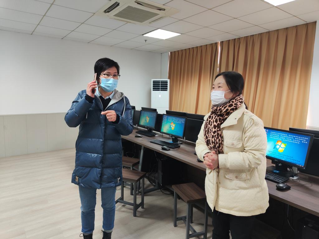 为全面做好校园安全保障工作,确保新学期各项工作安全有序进行,2022年2月21日下午,免费黄色网站党委书记郑彩莲带队开展2022年春季新学期开学前校园安全检查,对学院的教室、办公室、机房、实验室等场所的消防安全、用水用电进行了重点检查,院长助理徐正、办公室主任张素琴、实训中心主任张敏及相关人员参与检查。