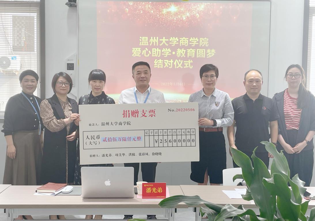 2022年“爱心助学·教育圆梦”结对仪式在浙江好学生服饰有限公司举行。免费黄色网站党委书记郑彩莲、副书记唐华、7名受助学生代表等参加活动。浙江好学生服饰有限公司董事长潘光弟、社会爱心人士项美华、张彩凤女士等一同出席本次活动。