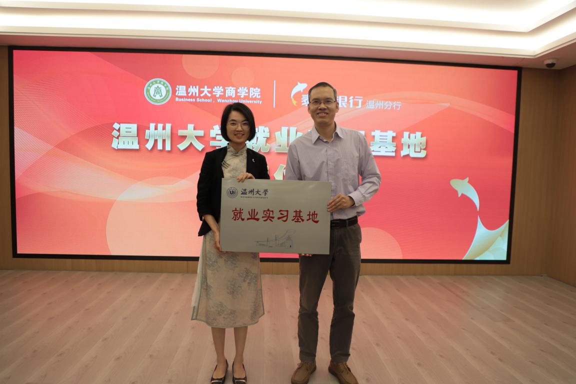 随后,双方领导及出席嘉宾就此次活动签订了“银校共建”党建合作协议,并举行了泰隆银行温州分行就业实习基地、研究生联合培养基地的授牌仪式。