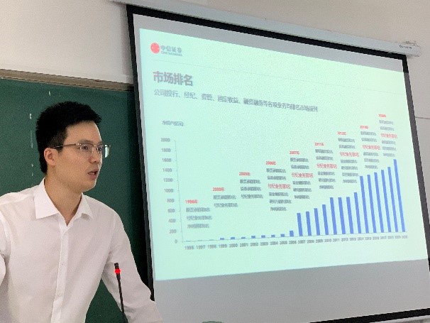 章步新老师在介绍中信证券后,讲述了财务管理的相关知识,借助美林时钟模型来进行讲解财务管理的相关知识。章老师鼓励同学们明确并制定未来目标,鼓励同学们在日常生活中积极参与实践实习,坚持完善自己才能达到自己的最终目标。