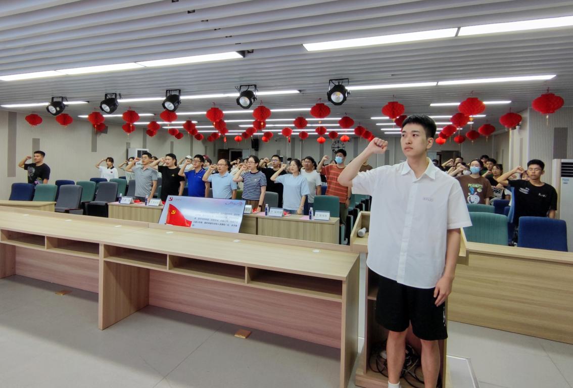 毕业生党员代表张嘉诚同志带领全体毕业生党员重温入党誓词。入党誓词镌刻着中国共产党人百年来的初心与使命,也提醒每位毕业生党员要时刻牢记党员身份,永葆政治本色。