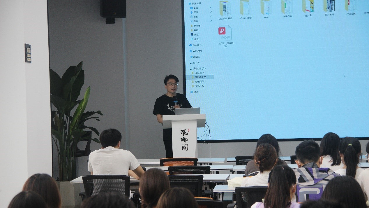 同学们到达琅琊阁后,由阿里国际站培训讲师、橙心企眼联合创始人邓凯讲师为同学们分享跨境电商就业指南。邓凯讲师与同学们积极互动,从跨境电商的行业前景、平台介绍、从业要求、职业规划四方面进行全面的阐述,利用思维导图的形式展示了跨境电商的行业前景,它为世界贸易开拓市场提供了有力的发展渠道;跨境电商的平台有零售和批发两种通道,平台可以选择阿里国际站、亚马逊等;在从业要求和职业规划方面,邓凯讲师提到产品运营和客户对接是跨境电商主要的就业方向,同学们需要针对不同的就业方向着重提升自己的能力和专业水平,以便于适应跨境电商的职业需求。