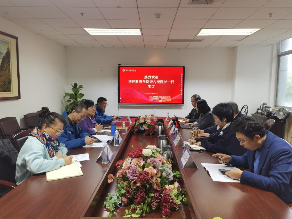 2022年12月1日上午,国际教育学院院长宋占美、副院长熊勇、招生科科长吴铨铨等一行来免费黄色网站调研,就国际化招生、人才培养等事宜展开交流,与会人员在免费黄色网站A222会议室齐聚一堂。