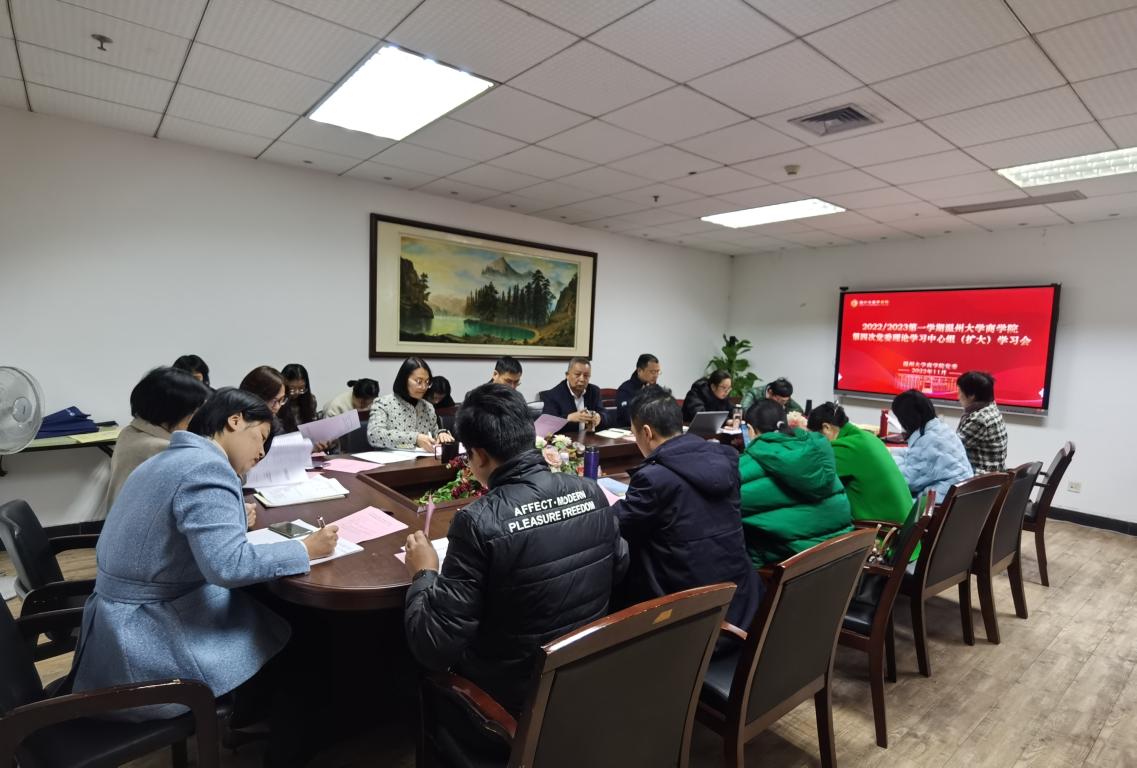 2022-2023学年第一学期第四次党委理论学习中心组(扩大)学习会在学院A222会议室顺利召开。院领导班子成员、党委委员、纪委委员、支部书记以及各科室负责人参会,会议由党委书记李密主持。