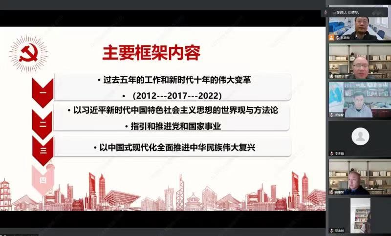 周建华书记做的关于二十大的报告生动,内容详实,老师们从不同角度也对报告进行了解读,吉云教授、毛华配教授就当前的疫情和教学提出了自己的看法。