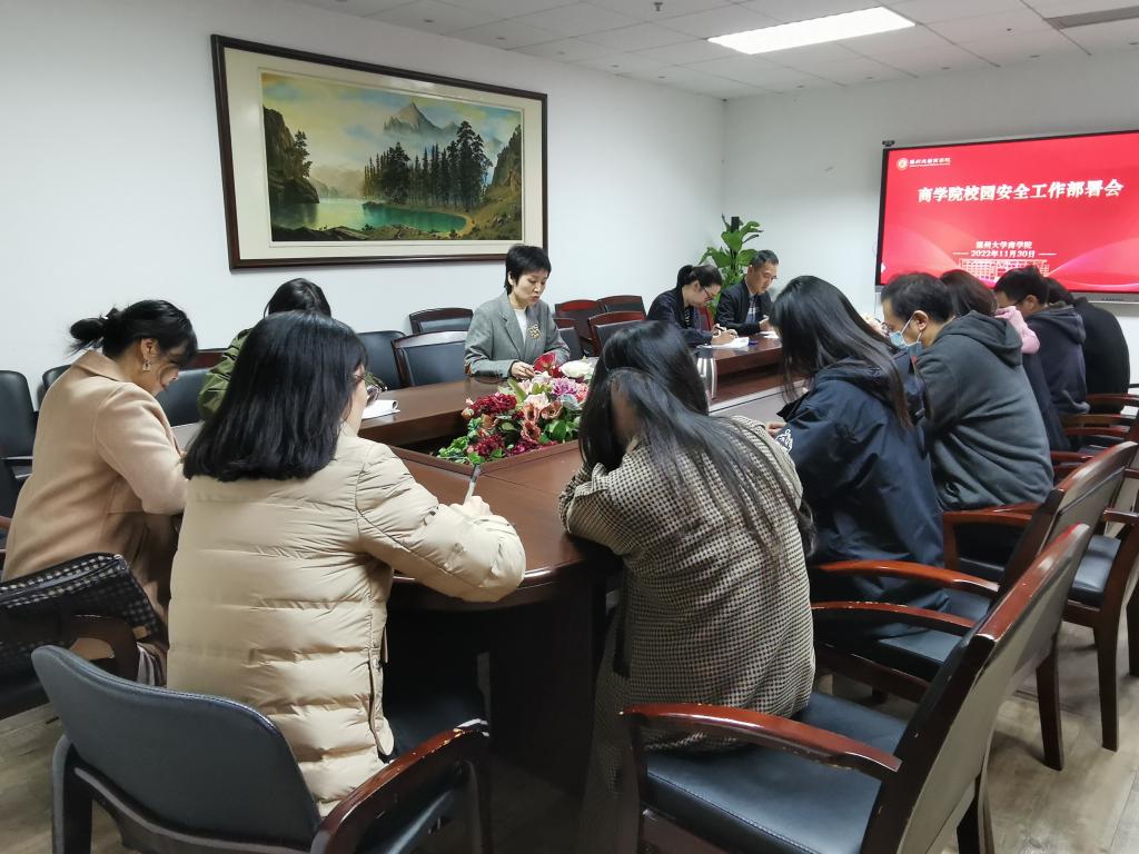 2022年11月30日,免费黄色网站在商院楼A222会议室召开校园安全工作部署会议,会议由学院党委书记李密主持,办公室、教学科、学生科、实训中心、金融研究院、温州人经济研究中心相关工作人员参加会议。