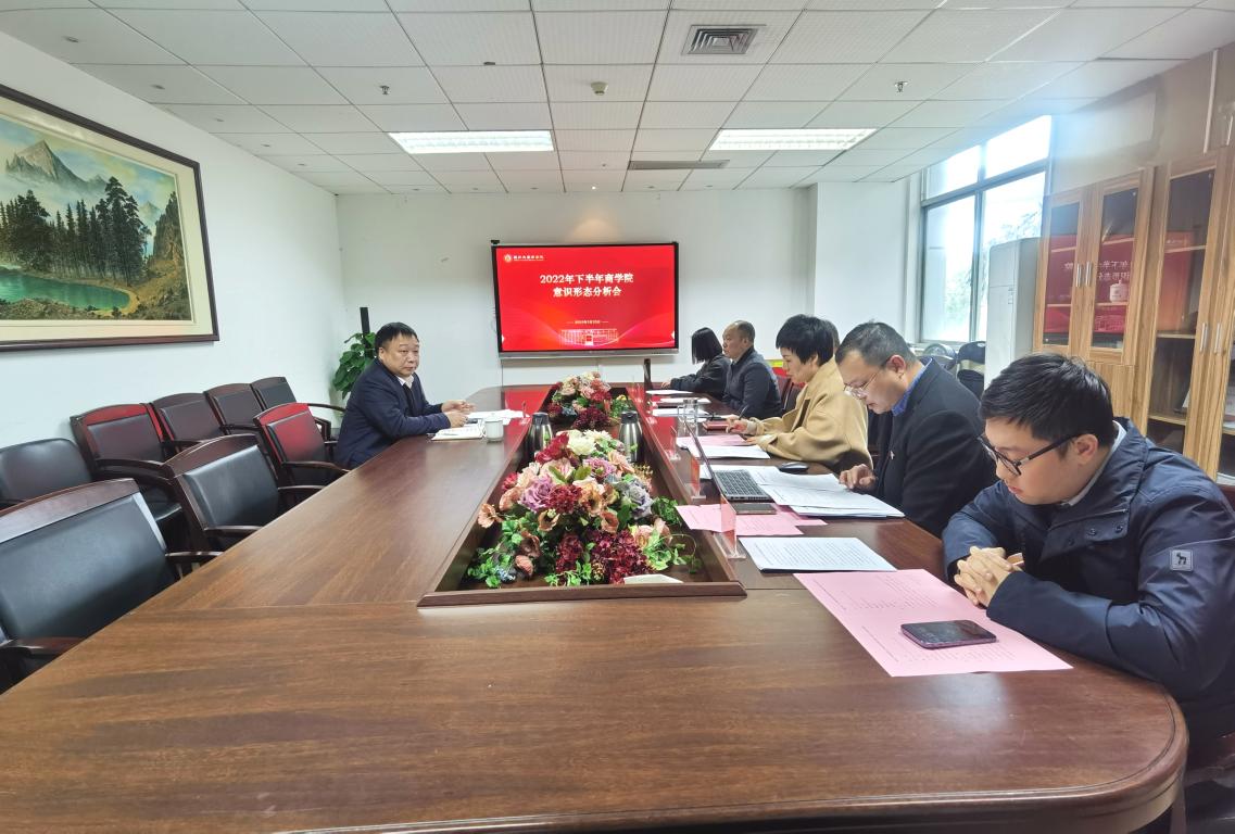 为了更好地贯彻落实“党要管党、从严治党”政治责任,深入推动意识形态工作与教学、科研、管理等各项工作相融合和《温州大学意识形态工作责任制实施办法》的要求,加强和改进党对意识形态工作的领导,我院党委于2023年2月23日下午召开2022年下半年意识形态工作分析会,分析会由党委书记李密主持,院长胡振华、副书记唐华、副院长余向前、陈文芝等出席,教师代表方嘉奇列席了分析会,温州大学校长赵敏全程参加指导会议。