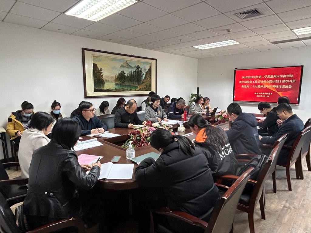 学院中层干部还就学习贯彻党的二十大精神集中轮训展开研讨交流。参会老师结合自身工作实际进行了发言,并就学院学科专业建设、高层次人才引进、高质量科研成果产出、人才培养质量、加强校企合作等方面展开了热烈讨论。