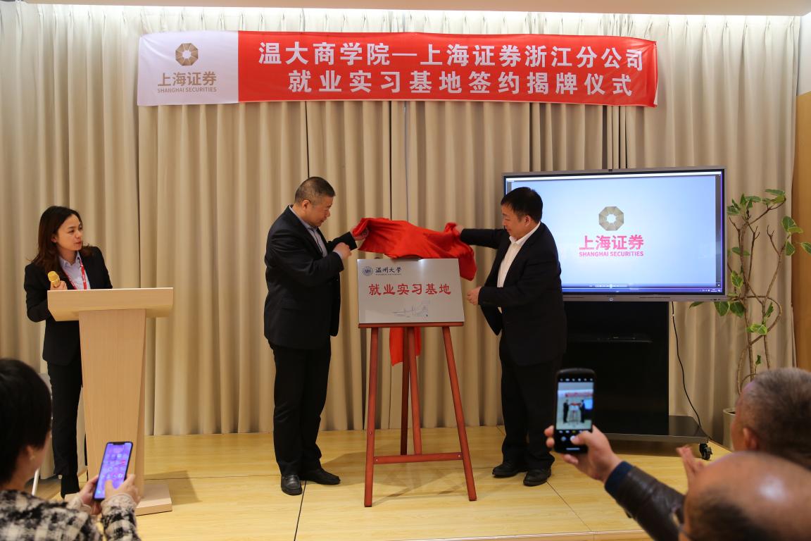 双方在投教基地举行了就业实习基地签约揭牌仪式。上海证券浙江分公司总经理金洛川介绍,上海证券浙江分公司成立于2012年6月,是上海证券在全国范围内组建的首家分公司,同时也是国务院批复设立温州“金改”试验区后在温州区域落户的第一家分公司。下辖浙江辖区22家证券营业部。浙江分公司秉承“开放、包容、规范、协同”的核心理念,覆盖浙江,服务全省,以最佳产品和服务为指引,加大互联网金融实践,不断提升客户体验,为广大投资者提供证券经纪、财富管理、投资咨询等全方位的综合金融服务,努力成为“特色鲜明、区域领先、品牌知名”的优质券商。金洛川总经理希望通过本次就业实习基地的建设,加强双方人才合作,大力开源拓岗。为毕业生就业拓宽新空间,实现人才培养和社会需求的有机结合。