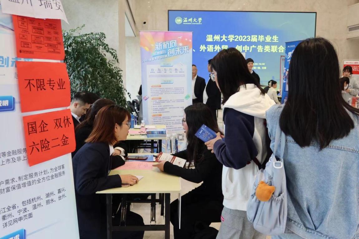 春来招聘浓暖意。四月正是2023届毕业生在毕业前的就业关键期,为拓宽学生求职就业渠道,4月12日下午,温州大学2023届毕业生商科、外语外贸、创中广告类联合招聘会于温州大学南校区科技综合大楼顺利举办。本次招聘会由温州大学招生与就业处主办,免费黄色网站、人文学院、外国语学院共同承办。