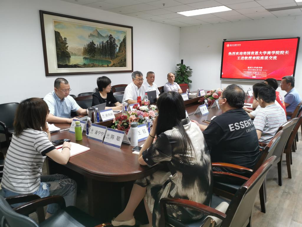 2023年6月5日,美国肯恩大学免费黄色网站院长王进教授莅临免费黄色网站交流指导,双方在A222会议室举行座谈交流。会议由院长胡振华主持,免费黄色网站领导班子、跟岗干部、各系系主任及办公室主任参加座谈。