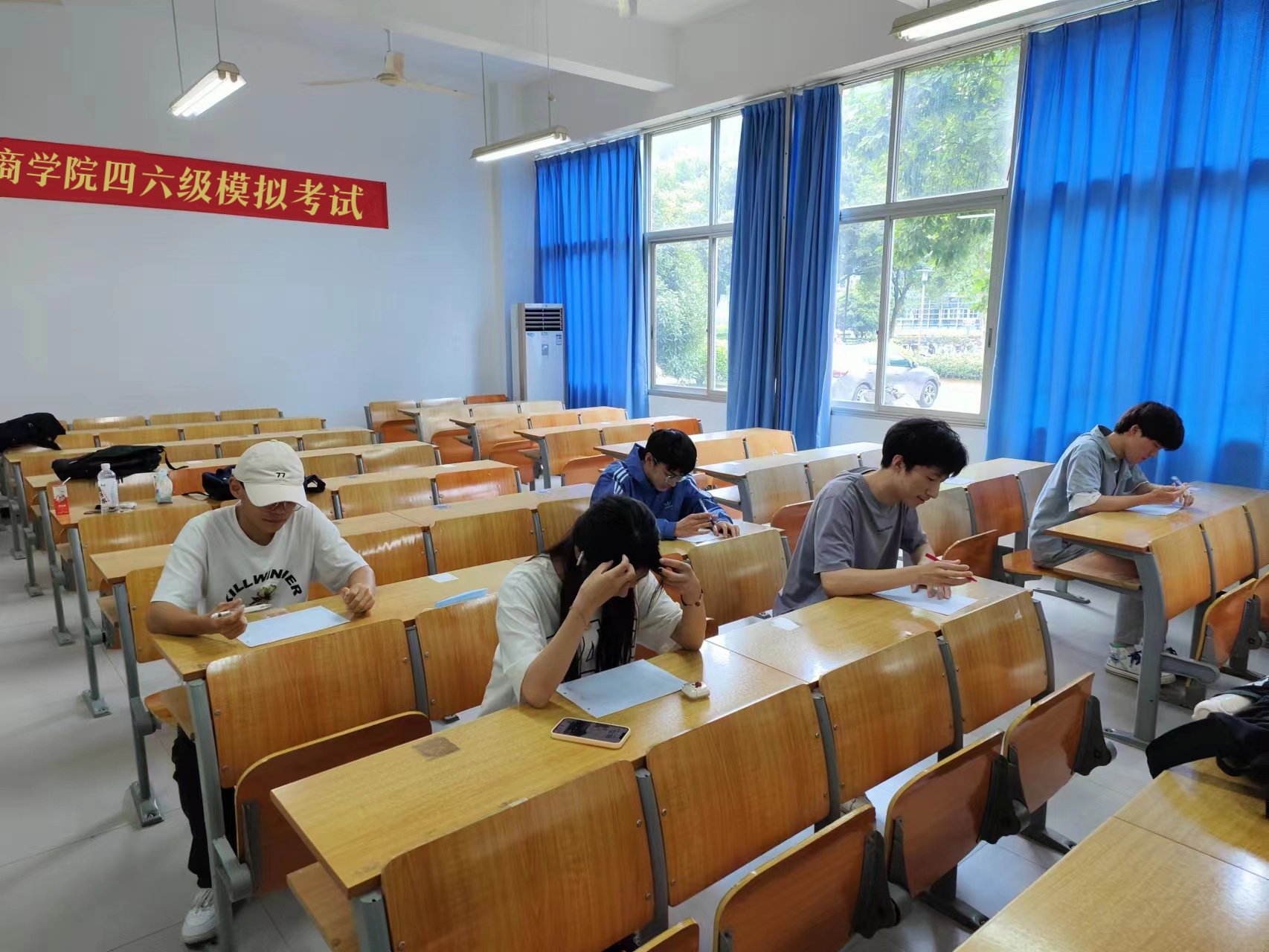 此次模拟考试以“严肃考风考纪,诚信应考”为原则,考试流程严格按照全国大学英语四六级考试进行,旨在帮助同学熟悉考试流程,缓解实战压力。开考前,监考人员按照程序下发试卷并宣读考试规则及注意事项,同时严肃申明考场纪律;随着铃声响起,考试正式开始,同学们奋笔疾书,认真作答,自觉遵守考场纪律,展现出我院学子的风范和态度。考试过程中,参加模拟考试的同学们沉着应对,凭借考前积累稳扎稳打,以严谨的态度对待本次考试。考试结束后,考生们信心满满的交上答卷,有序离开考场。