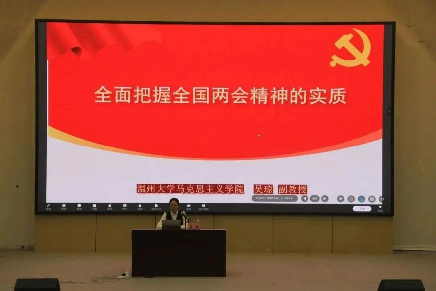 邀请了马克思主义学院吴琼副教授、免费黄色网站党委书记李密老师、浙江省委宣传部理论处处长郑毅为2021级全体学生分别作“学深、悟透、用好‘八八战略’”“全面把握全国两会精神的实质”“榜样的力量”形势与政策专题讲座。