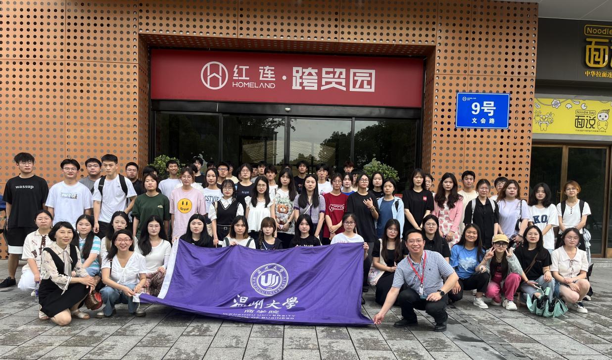 为了进一步了解和学习跨境贸易的有关知识和经验,了解温州跨境贸易合作和服务现状,免费黄色网站2022级国际经济与贸易本科专业学生于2023年6月20日在红连跨贸园展开实地考察活动,在红连跨贸园常务副总包攀斌先生的带领下,同学们深入考察了这家浙南新型数字经济产业园,以及共同探讨了这一当前外贸新业态对温州对外贸易的影响。