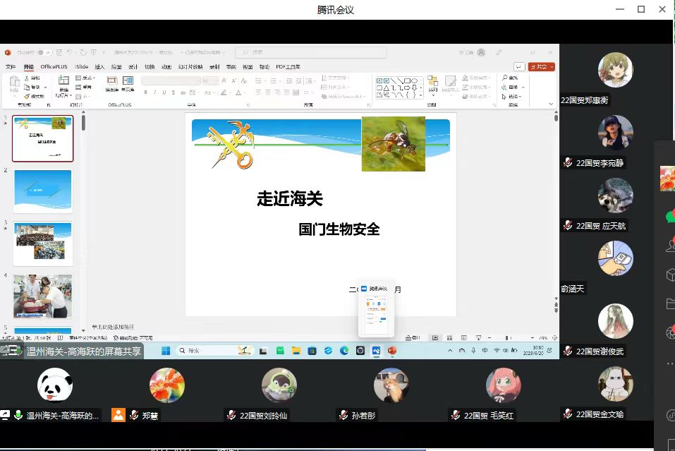 2023年6月20日上午,两场线上讲座——跨境电商初相识和国门生物安全在腾讯会议上顺利展开。讲座邀请到了温州商务局跨境电商综试区的专家陈彤童、李明清及温州海关监管科的专家高海跃。本次讲座旨在让免费黄色网站22国贸本的同学们初步了解温州跨境电商发展的现状,以及了解生物安全对进出口贸易的影响。
