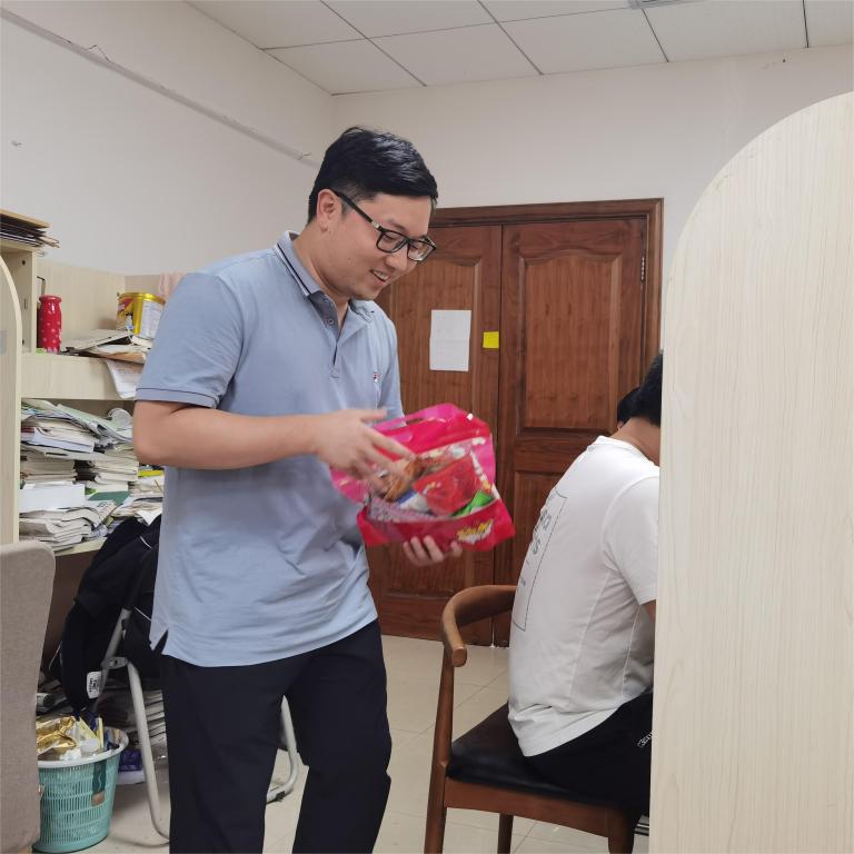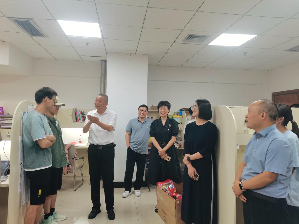 7月7日下午,免费黄色网站院长胡振华、党委书记李密、副院长陈文芝、党委副书记唐华、院长助理方嘉奇及学生科辅导员代表等一行人来到716考研样板间走访慰问暑期考研留校学生,与同学就考研备考情况进行了交流,了解同学们的学习、生活情况以及存在的困难,并给同学们送去了一份份温馨的好运加油礼包。