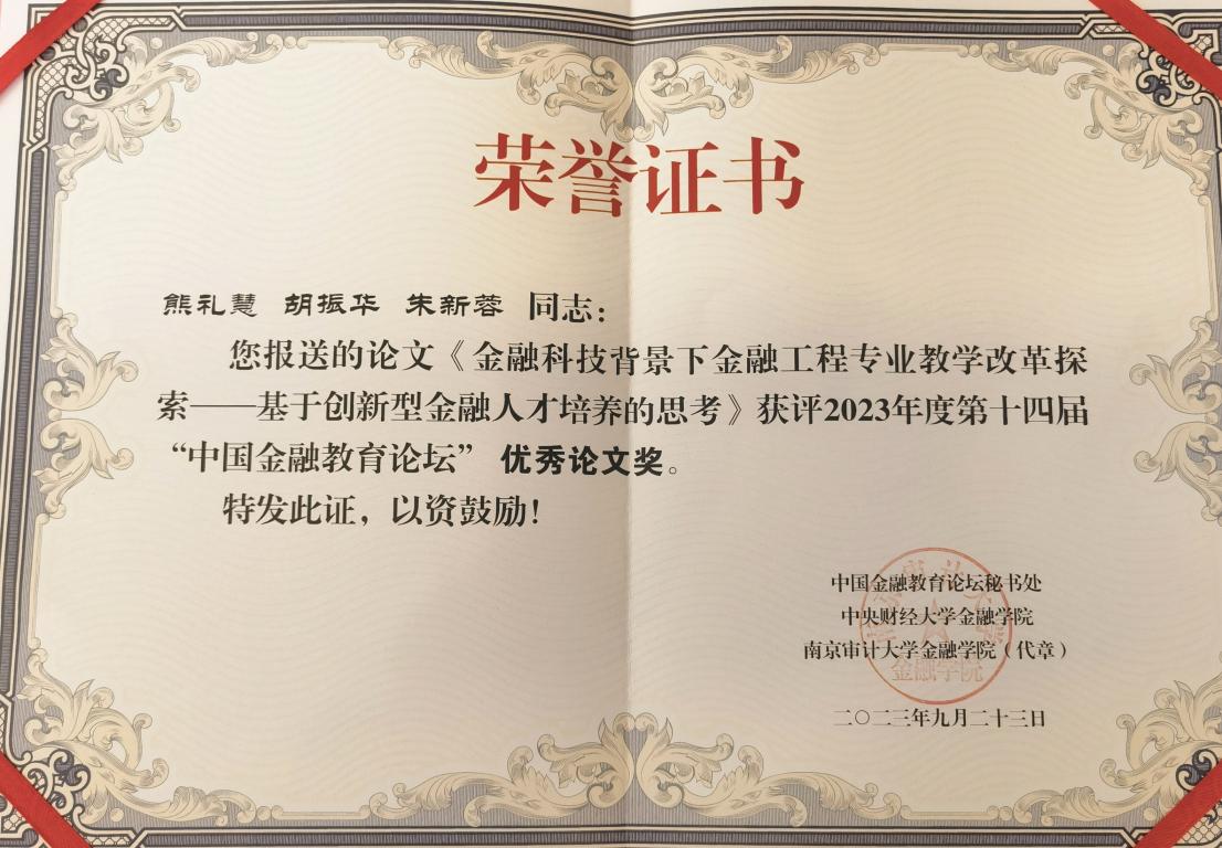 【金融工程动态】熊礼慧老师的《金融科技背景下金融工程专业教学改革探索——基于创新型金融人才培育的思考》的教改报告,并获得中国金融教育论坛年会优秀论文奖