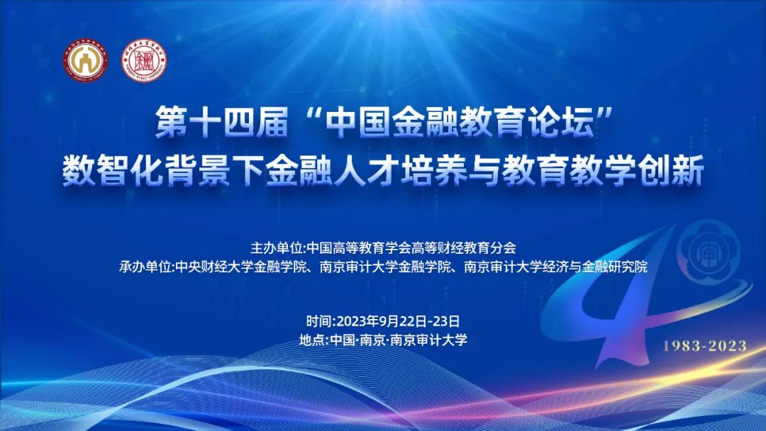2023年9月22-23日,第十四届“中国金融教育论坛”在南京审计大学浦口校区举行。2023年9月23日,第十四届“中国金融教育论坛”在南京审计大学浦口校区成功召开。本次会议由中国高等教育学会高等财经教育分会主办,中央财经大学金融学院、南京审计大学金融学院、南京审计大学经济与金融研究院共同承办,数家国内重点期刊提供学术支持。围绕“数智化背景下金融人才培养与教育教学创新”这一主题,来自清华大学、南京大学、中山大学、厦门大学、北京师范大学、中央财经大学、西南财经大学、中国人民银行金融研究所、温州大学等近70所高校与科研院所的专家学者共百余人展开了广泛交流与深入探讨。