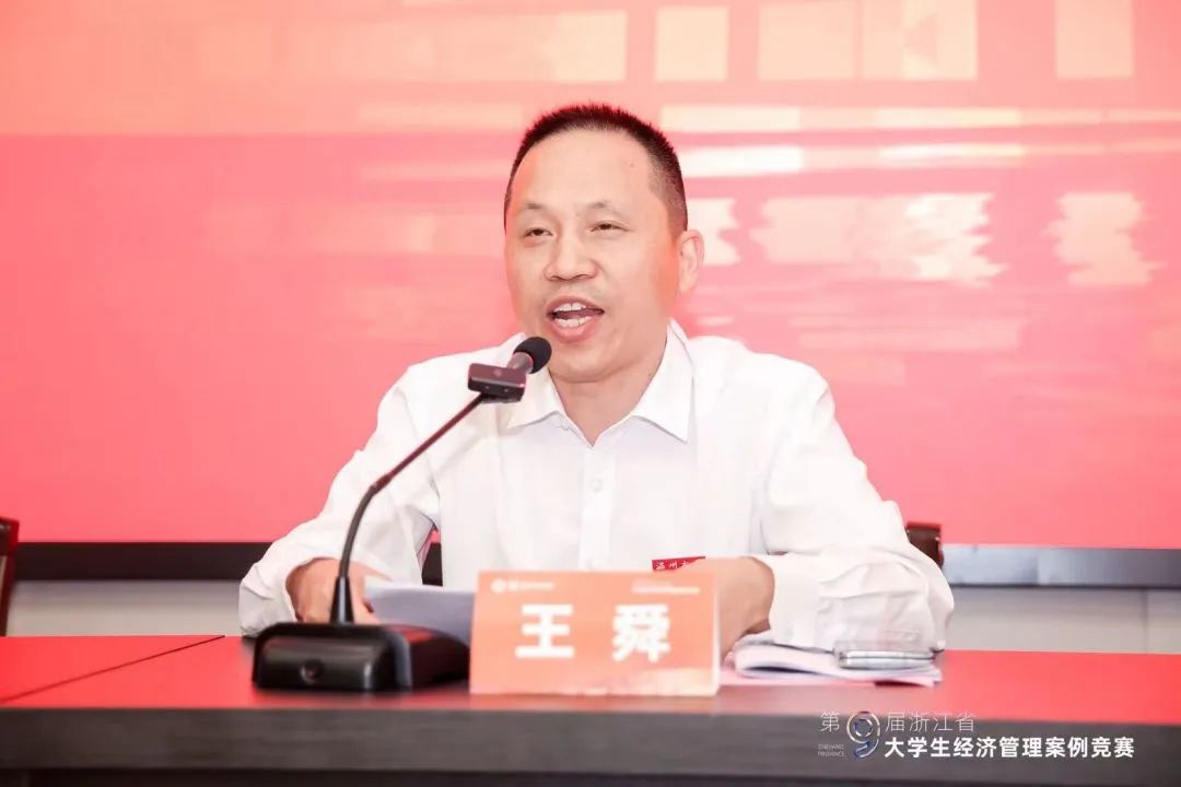 在闭幕式上,温州大学副校长王舜教授代表温州大学致辞。首先他向在本届竞赛中取得优异成绩的团队和学校表示热烈祝贺,并向对竞赛关心支持的省教育厅、统筹竞赛组织管理的杭州电子科技大学表示衷心感谢。其次他表示温州大学全面落实立德树人根本任务,着力培养“重实践、强创新、能创业、善管理、敢担当”的高素质人才,形成了师范教育、创新创业教育、华侨教育三大办学特色。最后他提到案例分析的重要意义,希望同学们可以通过比赛加深对理论知识的理解,掌握将理论知识应用于实践的方法和技能。
