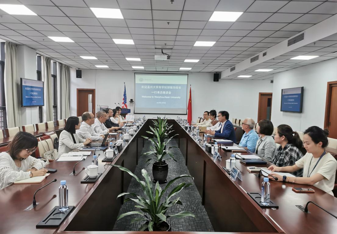院长胡振华、党委书记李密携学院全体领导班子成员及免费黄色网站国教部相关人员赴温州肯恩大学调研学习。温州肯恩大学学术副校长杨毅欣教授、温州肯恩大学免费黄色网站代理院长Tobin Porterfield等共9人参与座谈会,共同探讨两校国际化合作事宜。