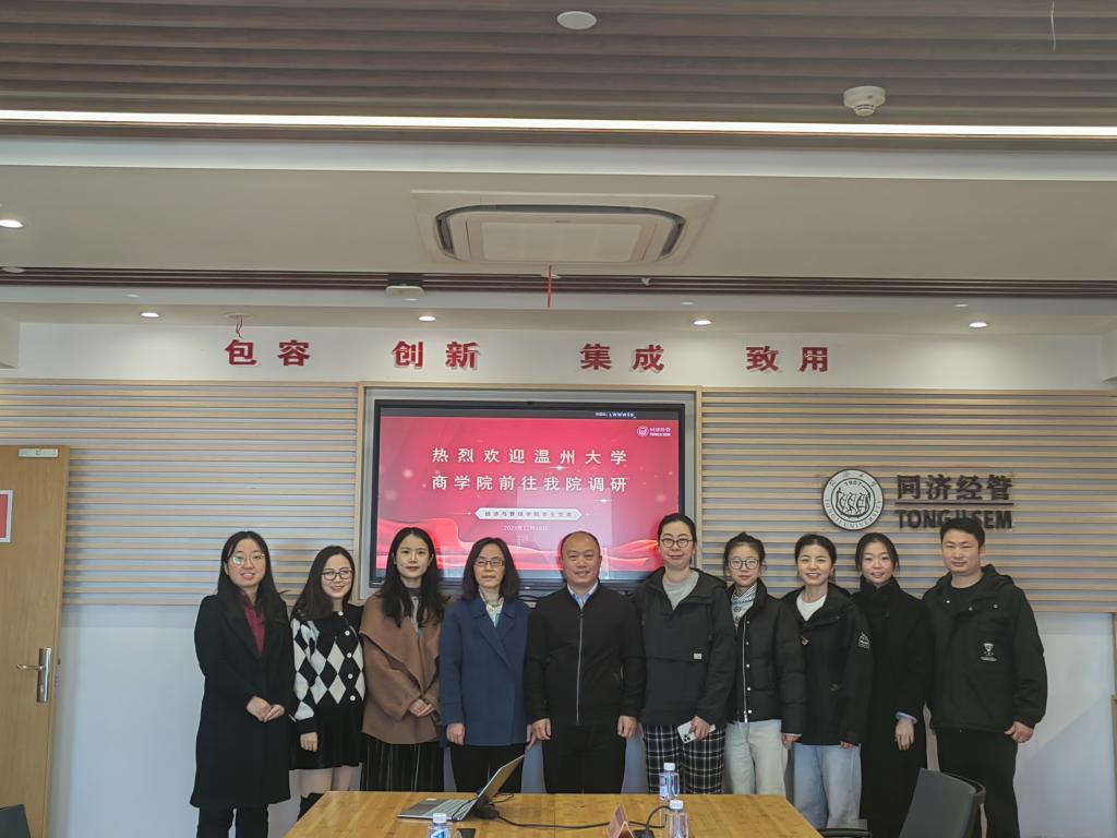 党委副书记唐华带领学工调研团队前往同济大学经管学院调研交流。同济大学经管学院学生党委副书记周彧、学工办主任季茂茂以及相关辅导员参加调研。