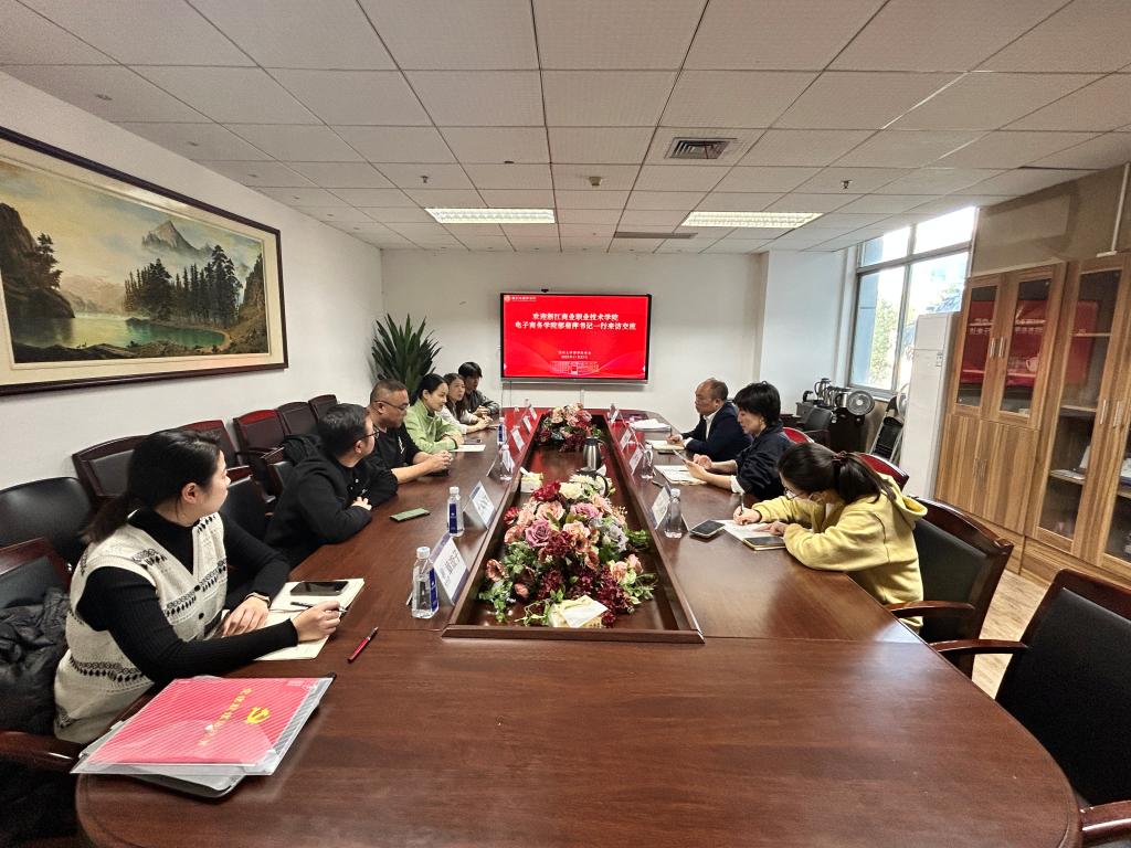 为了加强院际交流合作,学习党建工作经验,推动两院发展,11月27日上午,浙江商业职业技术学院电子商务学院一行赴我院调研交流,两院在免费黄色网站A222会议室召开了座谈交流会。浙江商业职业技术学院电子商务学院党总支书记郁菊萍、党总支副书记梁剑非、学工办主任傅雅琦、电子商务专业群第一党支部宣传委员陆臻杰、电子商务专业群第二党支部组织委员陈光星、电子商务学院组织员章璇子,我院党委书记李密、党委副书记唐华、学生科科长周洁文、党务秘书聂海燕出席会议。