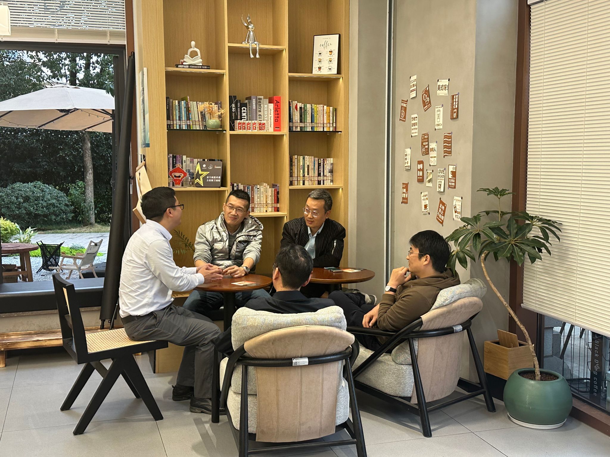 2023年11月10日,金融工程系的投资学教学团队走进泰隆银行人才之家,开展“银校共建”下的交流活动。参与老师有金融工程系系主任林德根、国贸系系主任姜亮、金融研究院主任王小锋、海归博士王湛等,泰隆银行龙湾支行行长余康康行长代表泰隆银行非常欢迎投资学教学团队的到来。也特别希望各位老师经常到泰隆银行看看,在轻松愉悦的休闲时光中讨论交流。