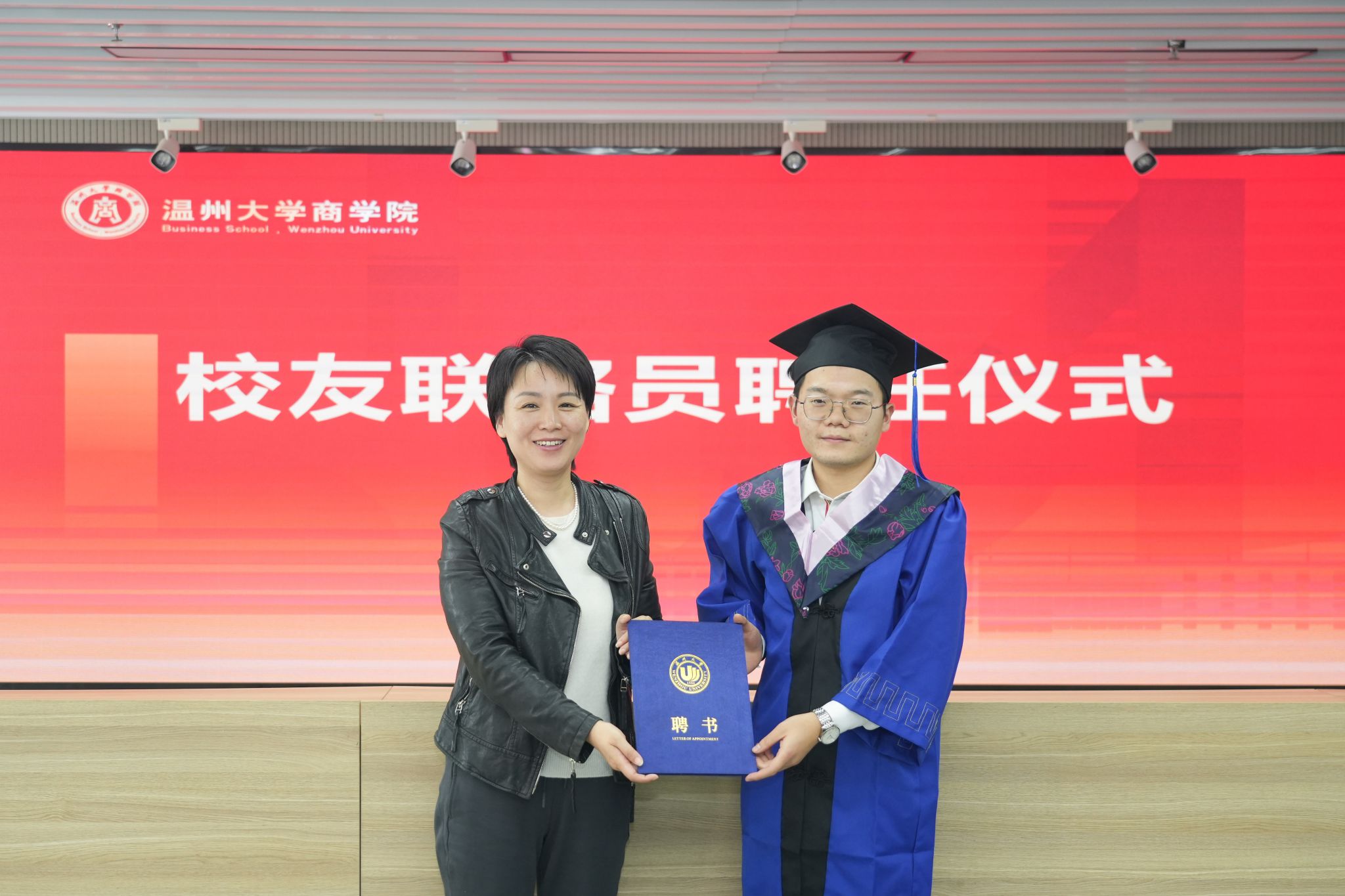 为进一步加强校友与母校、校友与校友之间的联络沟通,李秘书记特此为校友联络员王江南同学颁发聘书。聘书虽小,但承担了母校对全体校友的关切之情,希望校友联络员能够积极发挥作用,真正成为校友与母校、校友与校友之间的联络纽带。