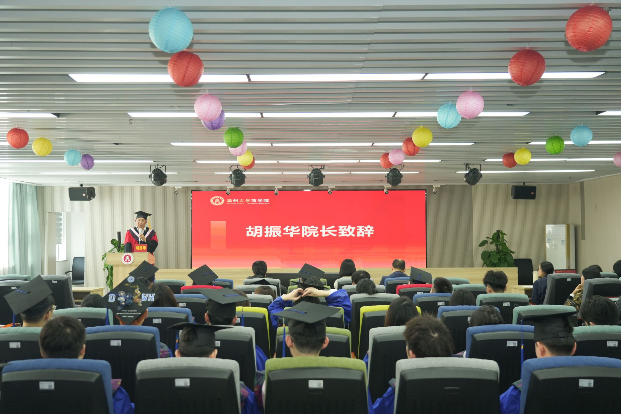 胡振华院长深情寄语毕业生们。他代表学院全体师生,向圆满完成学业的毕业生致以衷心的祝福,向为毕业生的成长付出辛劳与汗水的教师和家长致以最诚挚的感谢。时间是伟大的书写者,同学们的研究生生涯如同一场马拉松比赛,聚焦目标,铆足干劲,笃定前行。