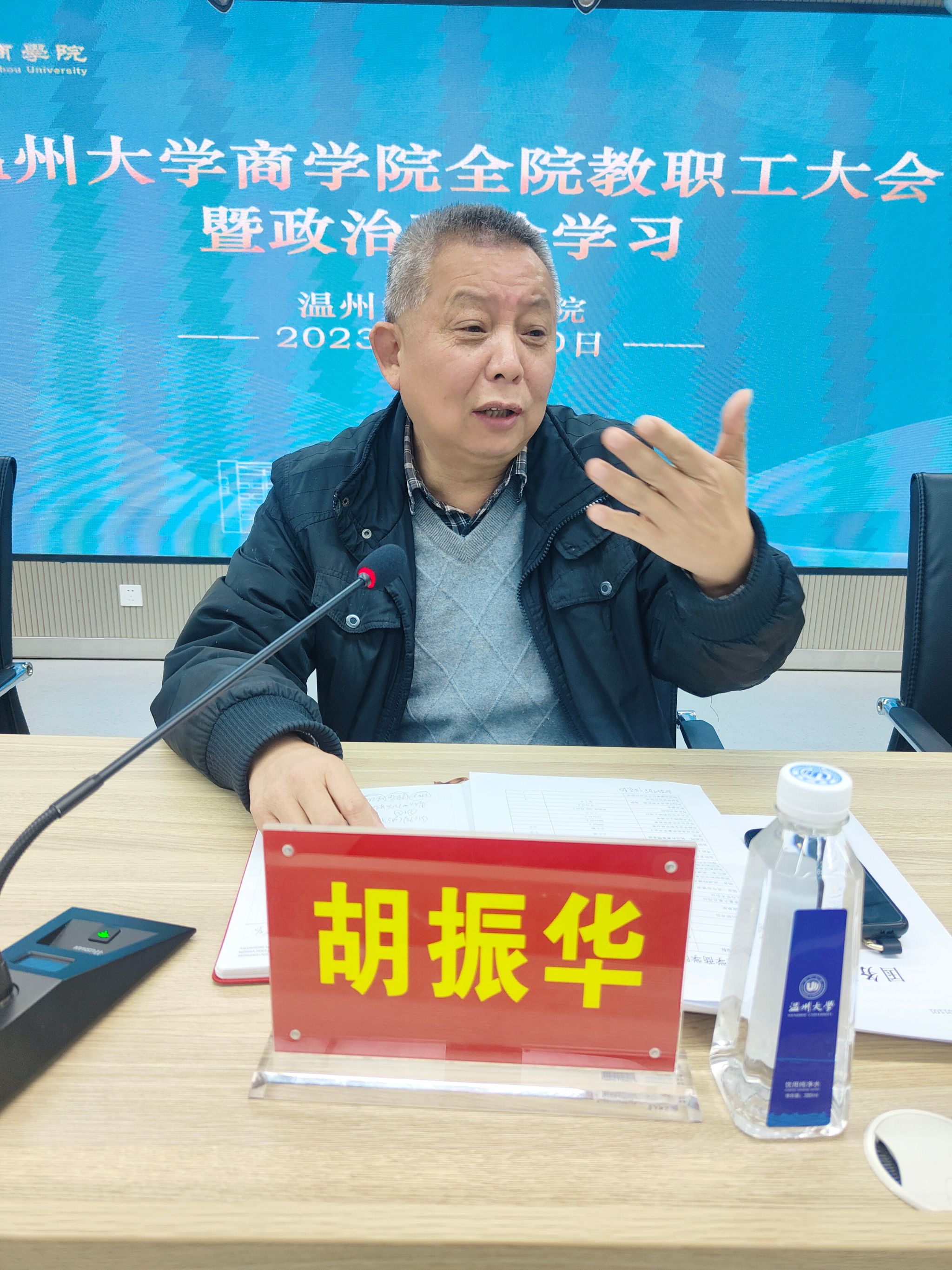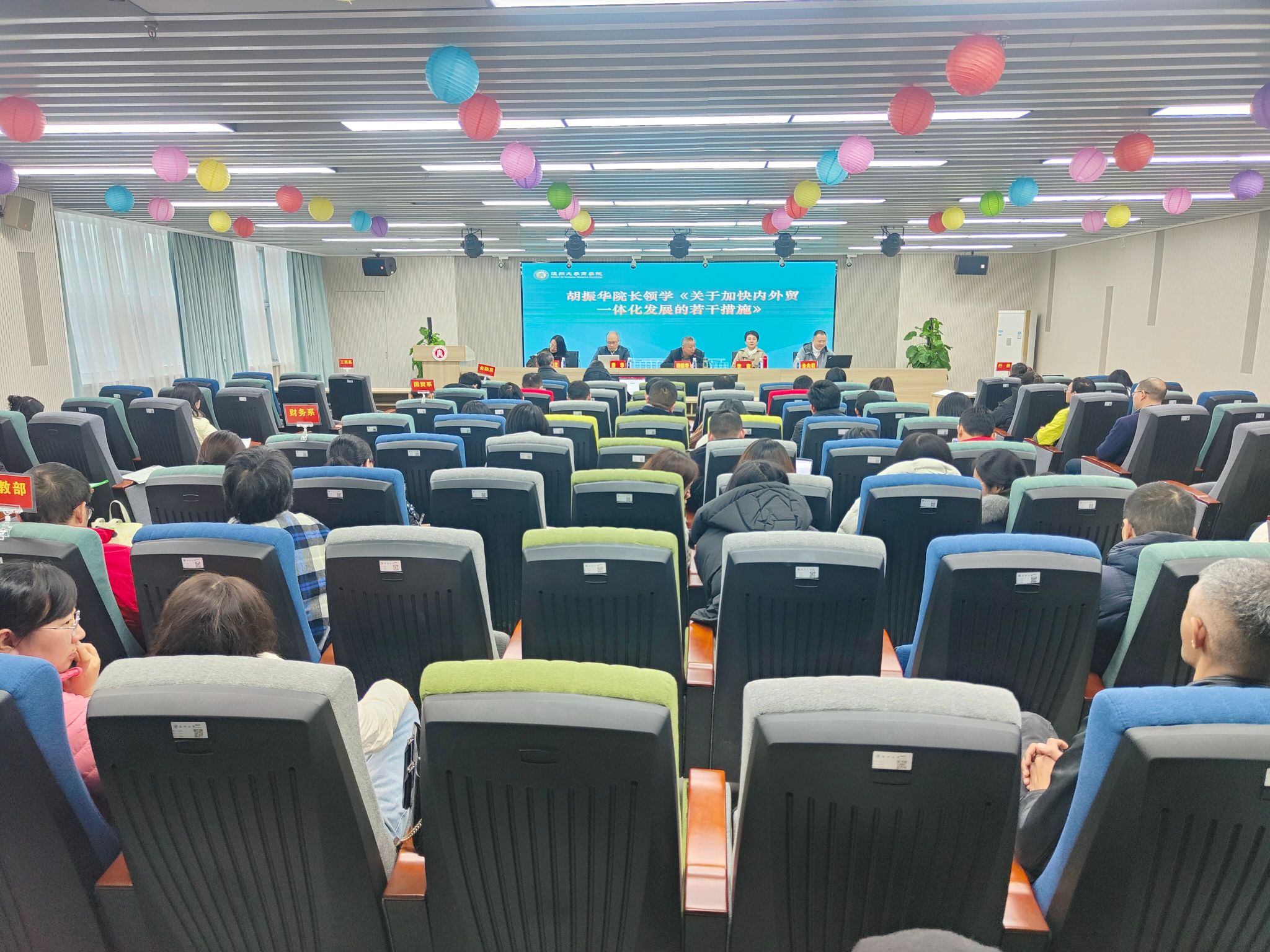 会议学习了《关于加快内外贸一体化发展的若干措施》,学院院长胡振华领学。