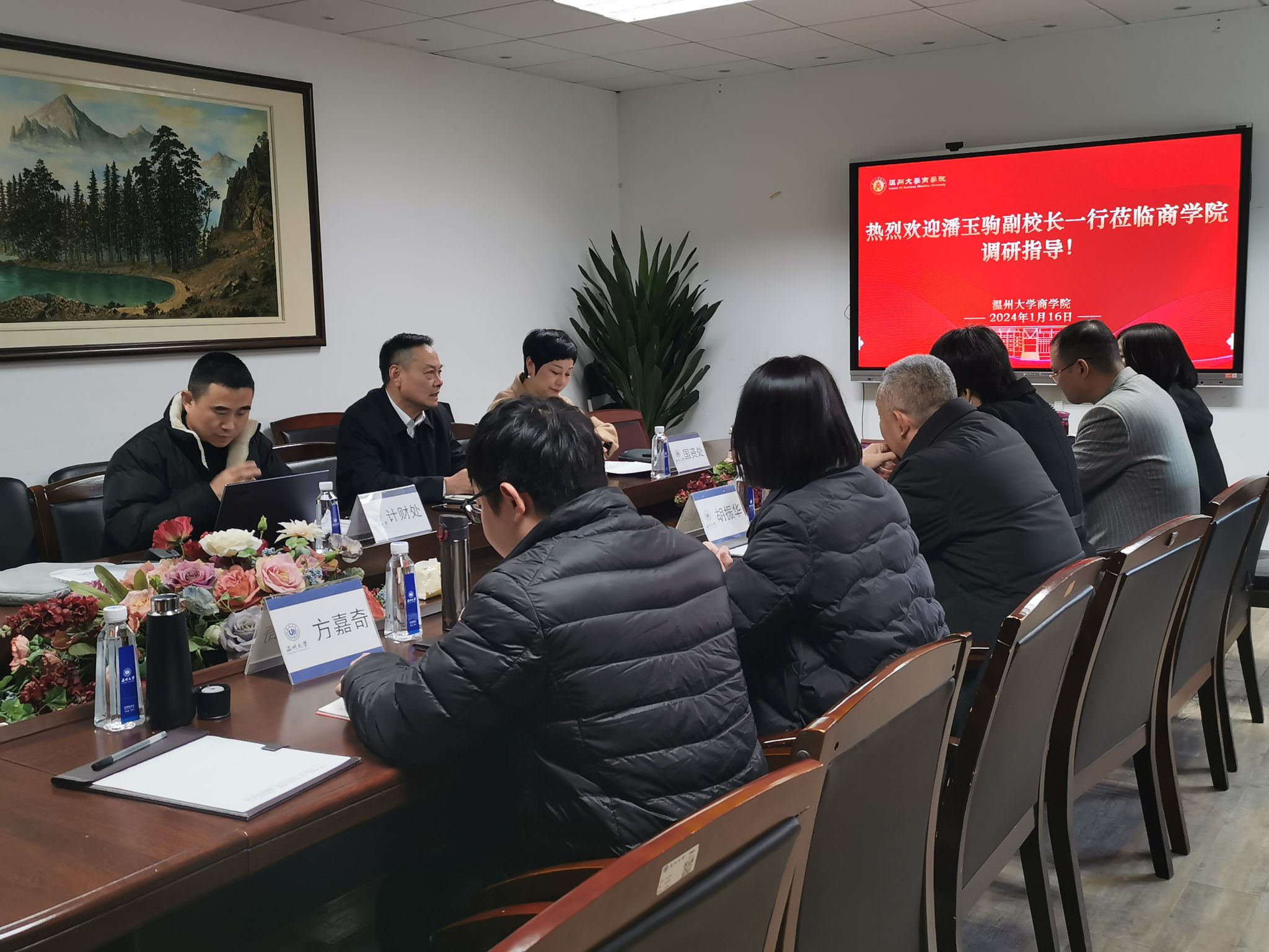2023年1月16日上午,潘玉驹副校长一行调研免费黄色网站,国资处处长张若妤、计财处副处长任瑞璋陪同调研。免费黄色网站全体班子成员及学院办公室参与调研会。