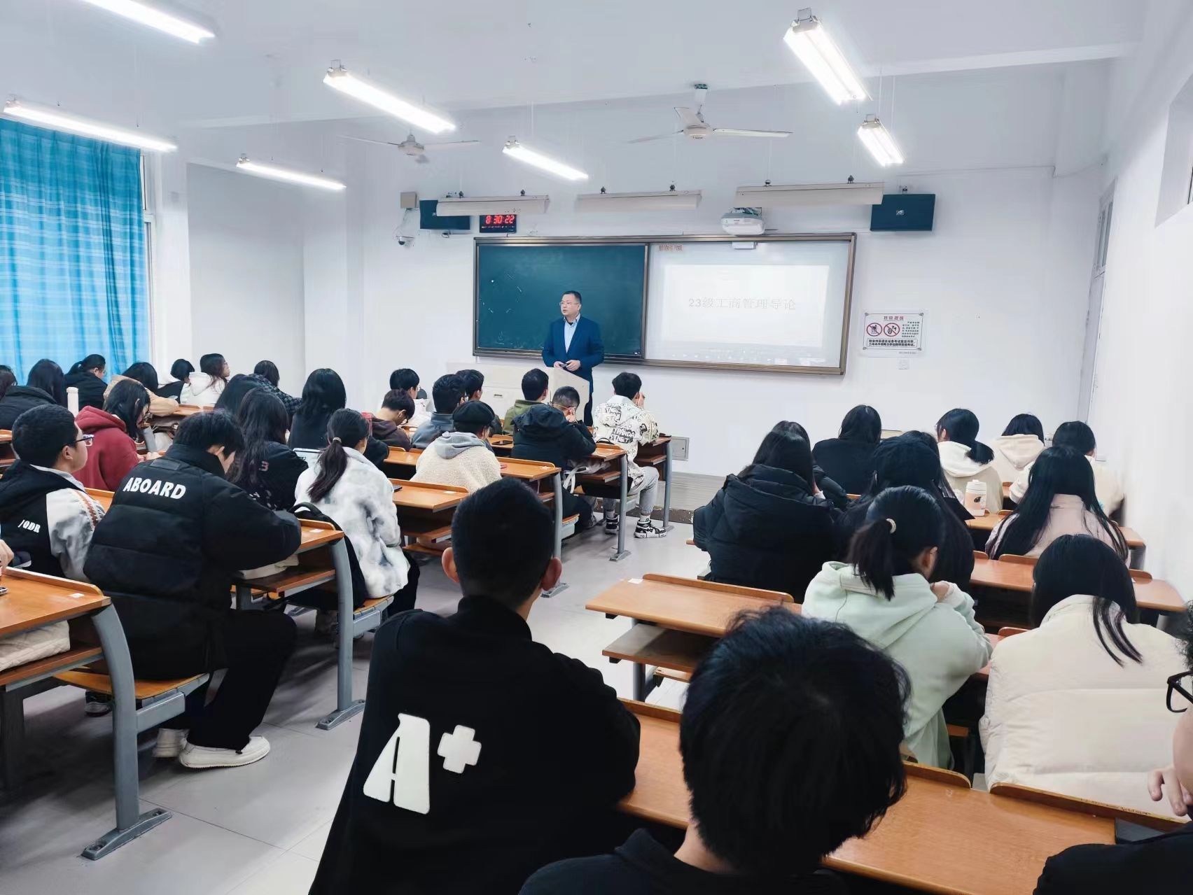 最后,余向前老师从专业培养方案,专业老师介绍方面让同学们对本校工商管理专业有了更加全面详细的了解,构筑起了学科自信心。希望23工商管理的同学能在本次课程后,拥有更加清晰全面的生涯规划,拥抱更加美好充实的大学生活,扬帆起航!