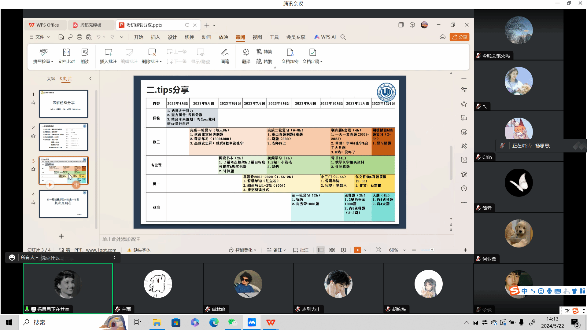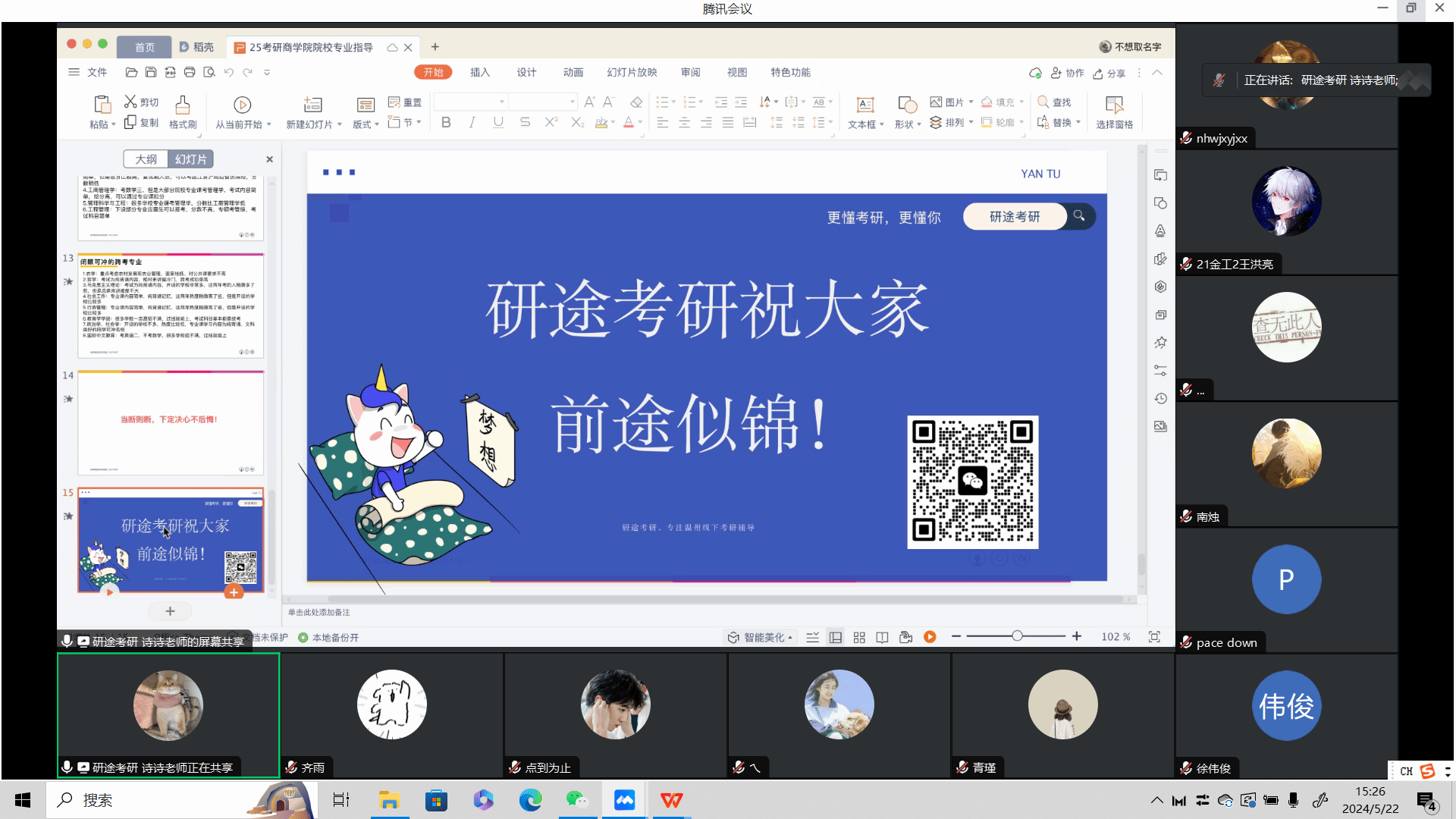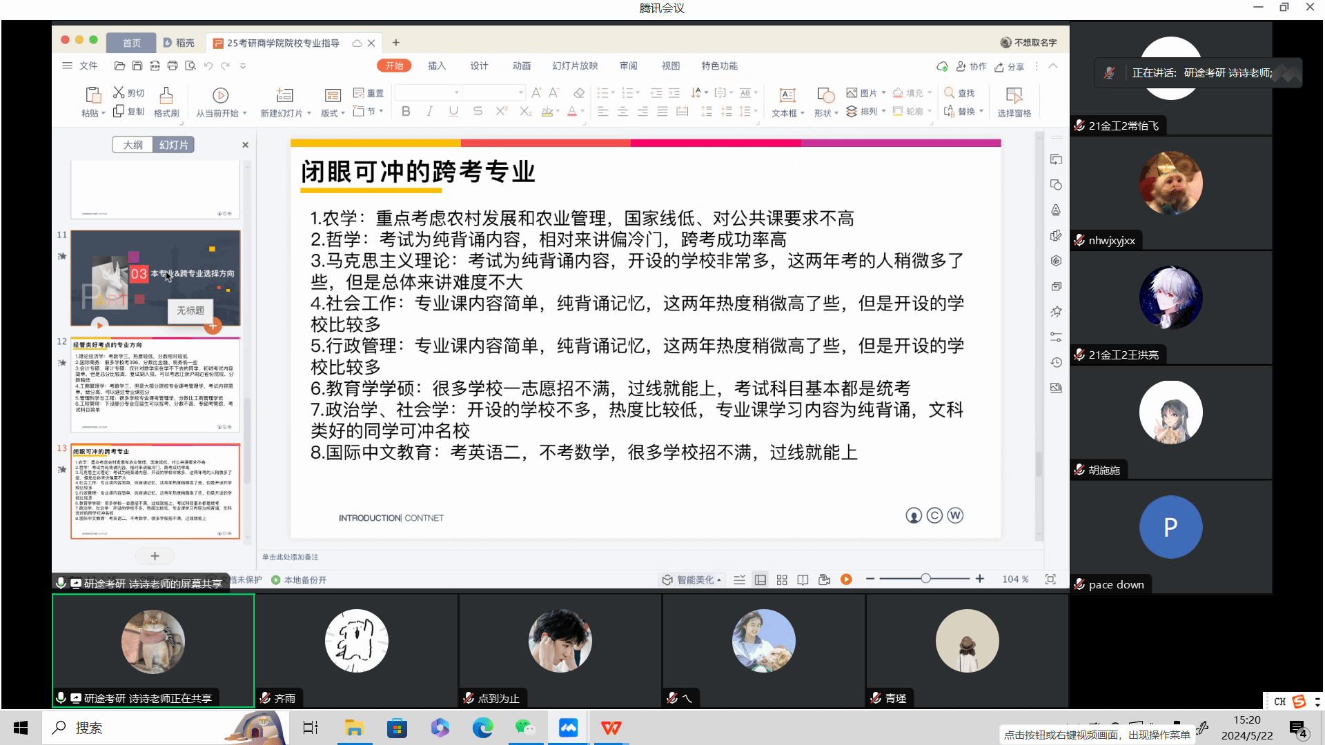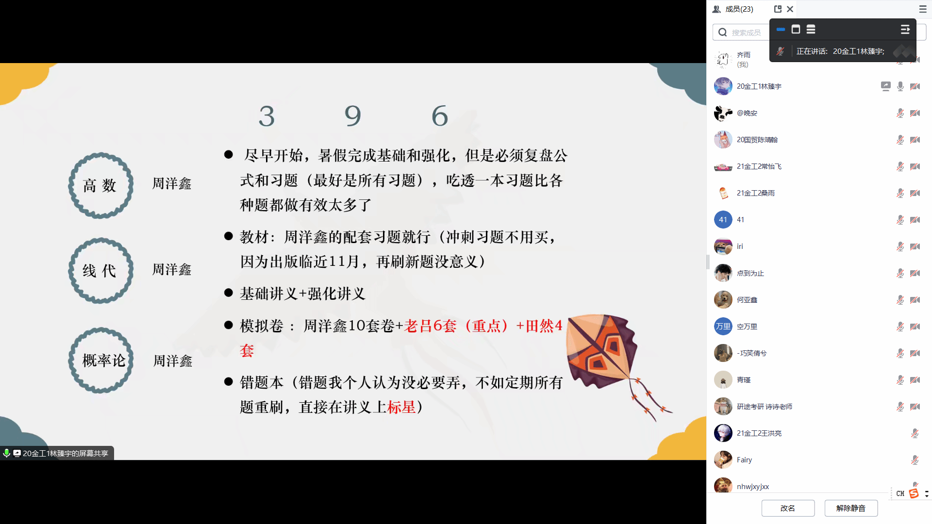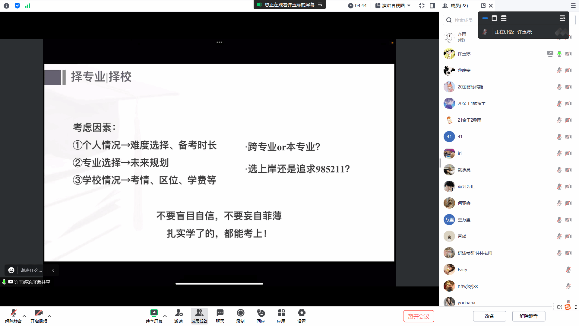 联合研途考研于近日在腾讯会议上成功举办了“2024届考研经验线上分享会”。在这场别开生面的线上交流中,六位成功上岸的学姐学长们结合自身考研经历热情耐心地回答了学弟学妹们的各种问题,现场气氛十分热烈。