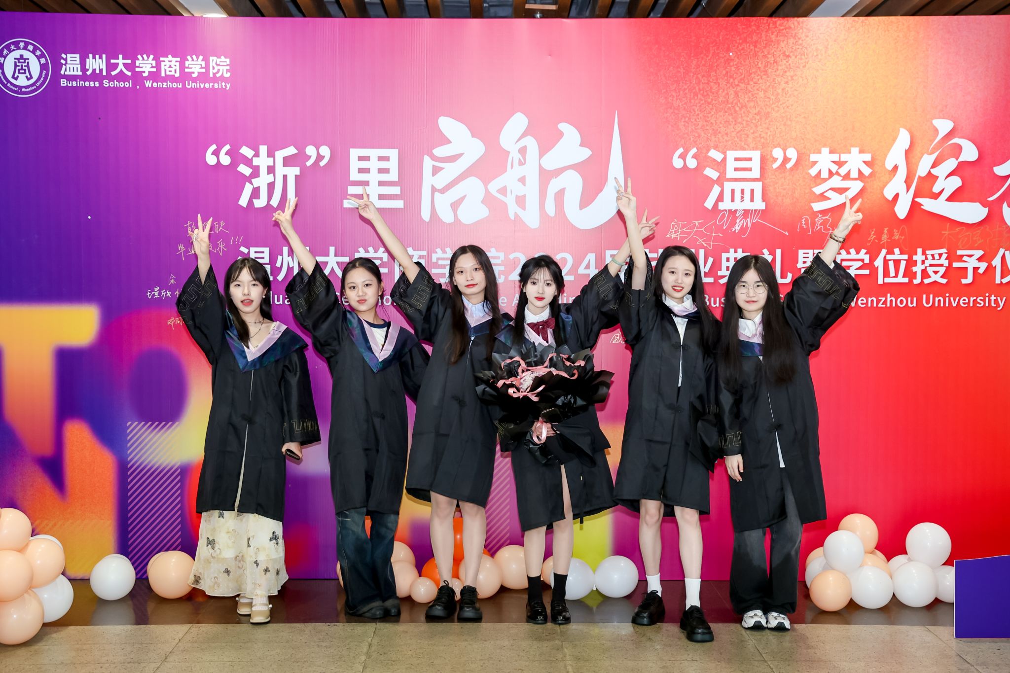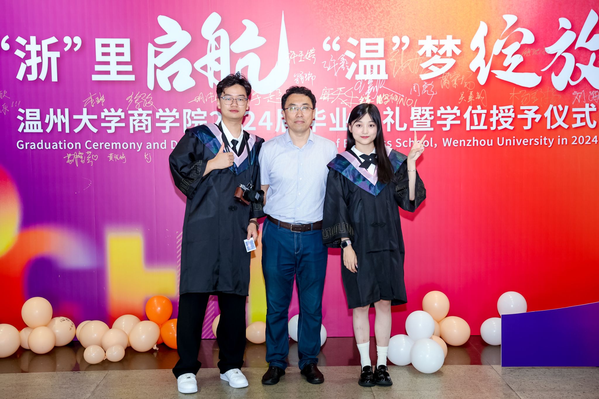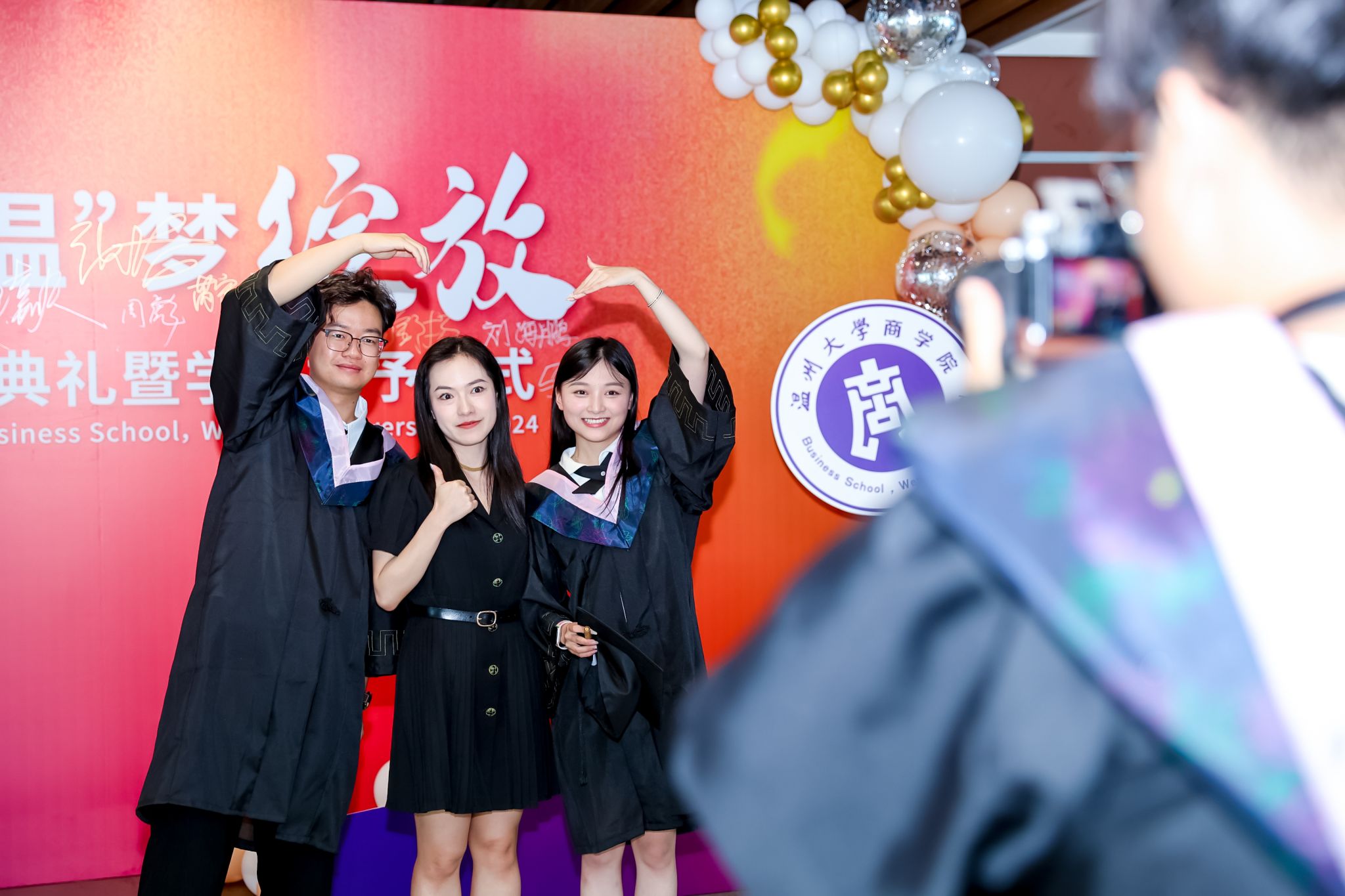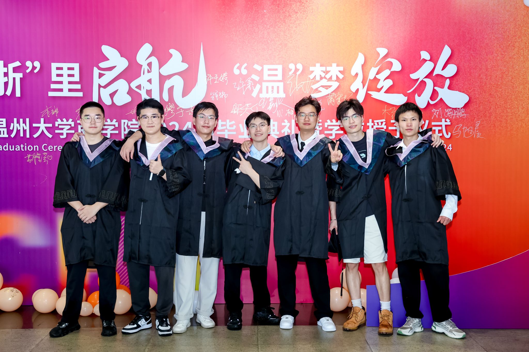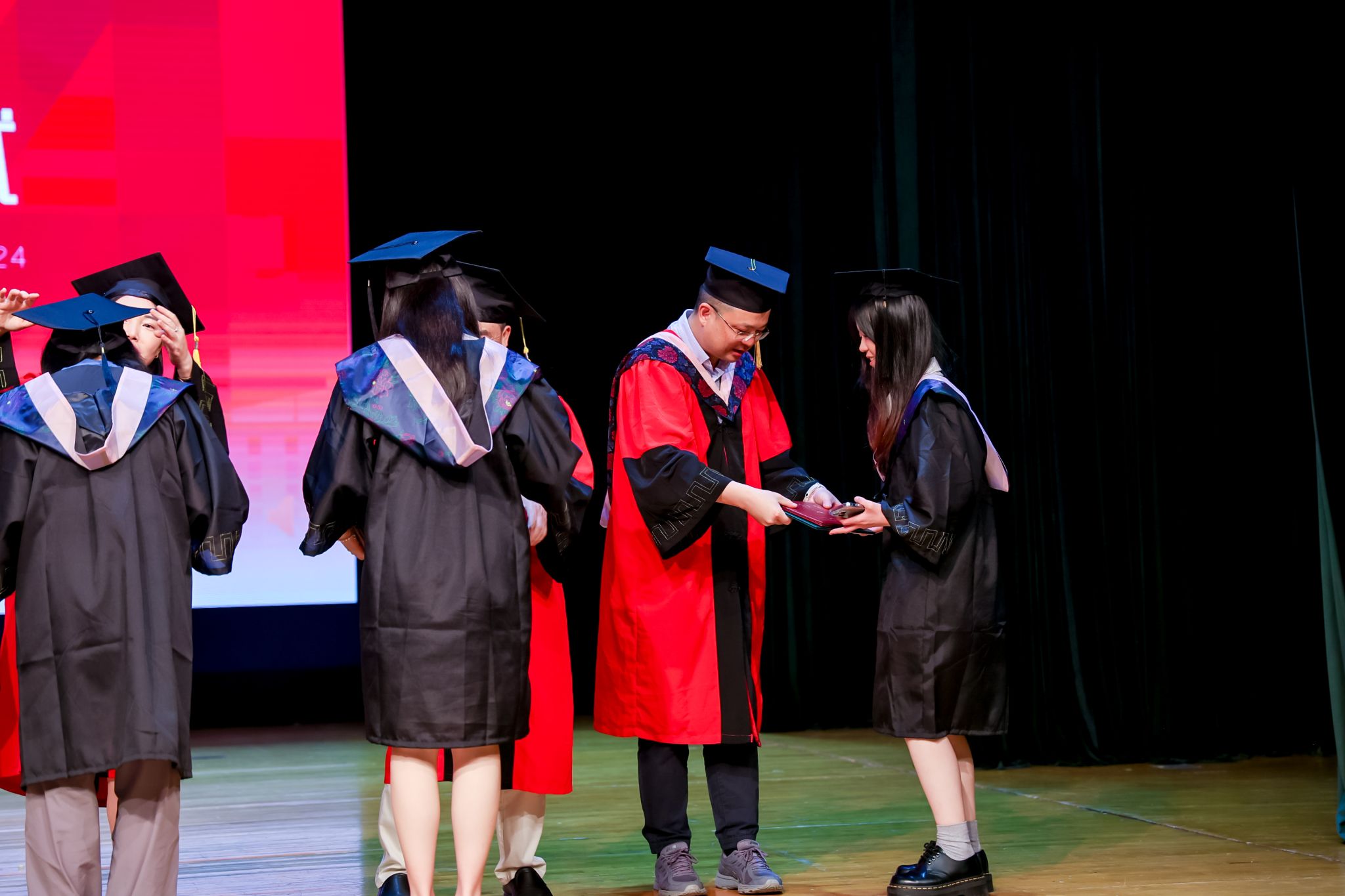毕业典礼上,免费黄色网站学术委员会的教授代表们依次走上台前,为每一位毕业生庄重地拨穗,亲手颁发毕业证书和学位证书,随后与毕业生们共同合影留念,以记录下这人生中意义非凡的时刻。
