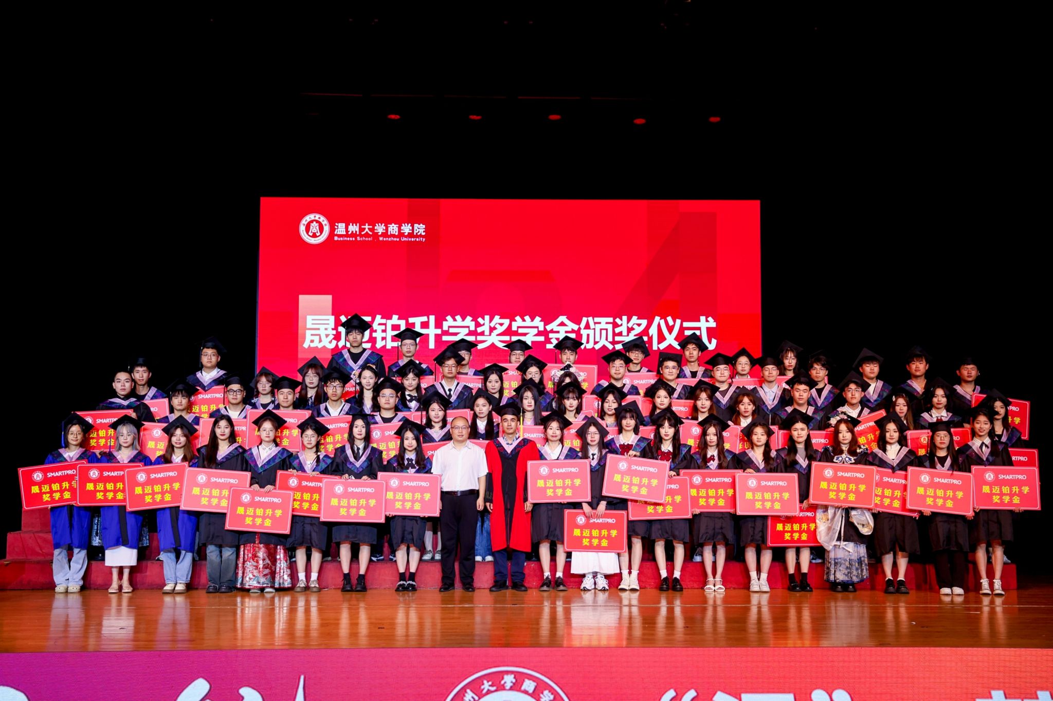 免费黄色网站校友会副会长、93届外贸经济优秀校友、温州晟迈铂贸易有限公司董事长莫欣为学院捐赠晟迈铂升学基金,专项用于学生升学奖励。典礼现场,罗建利院长、唐华书记为今年顺利升学的73名毕业生颁奖并送上诚挚的祝福。