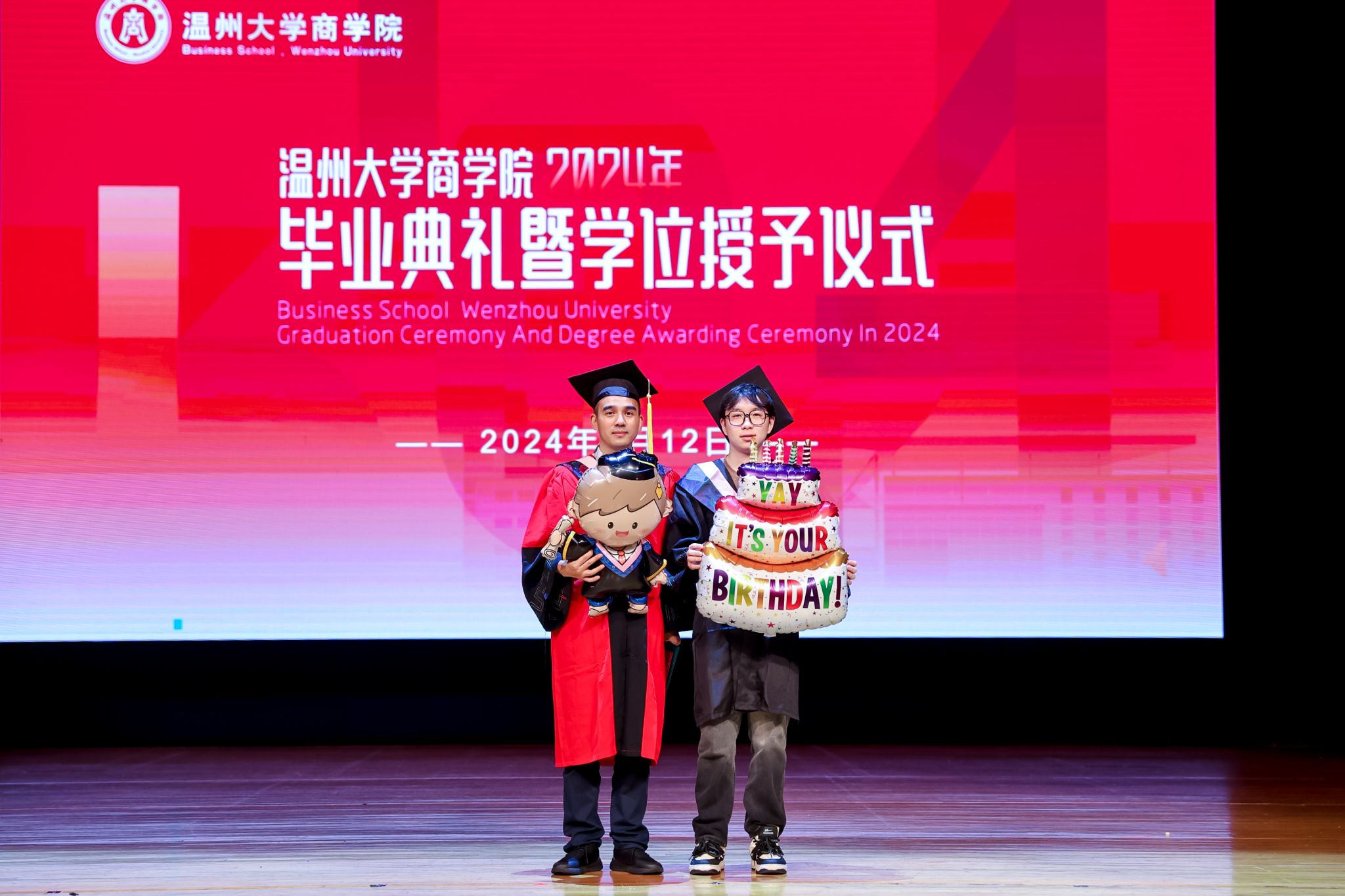 今天,恰逢三位毕业生的生日,为了纪念这一独特且值得纪念的时刻,学院精心策划了一场别出心裁的生日惊喜,以此向他们致以最诚挚的祝福。