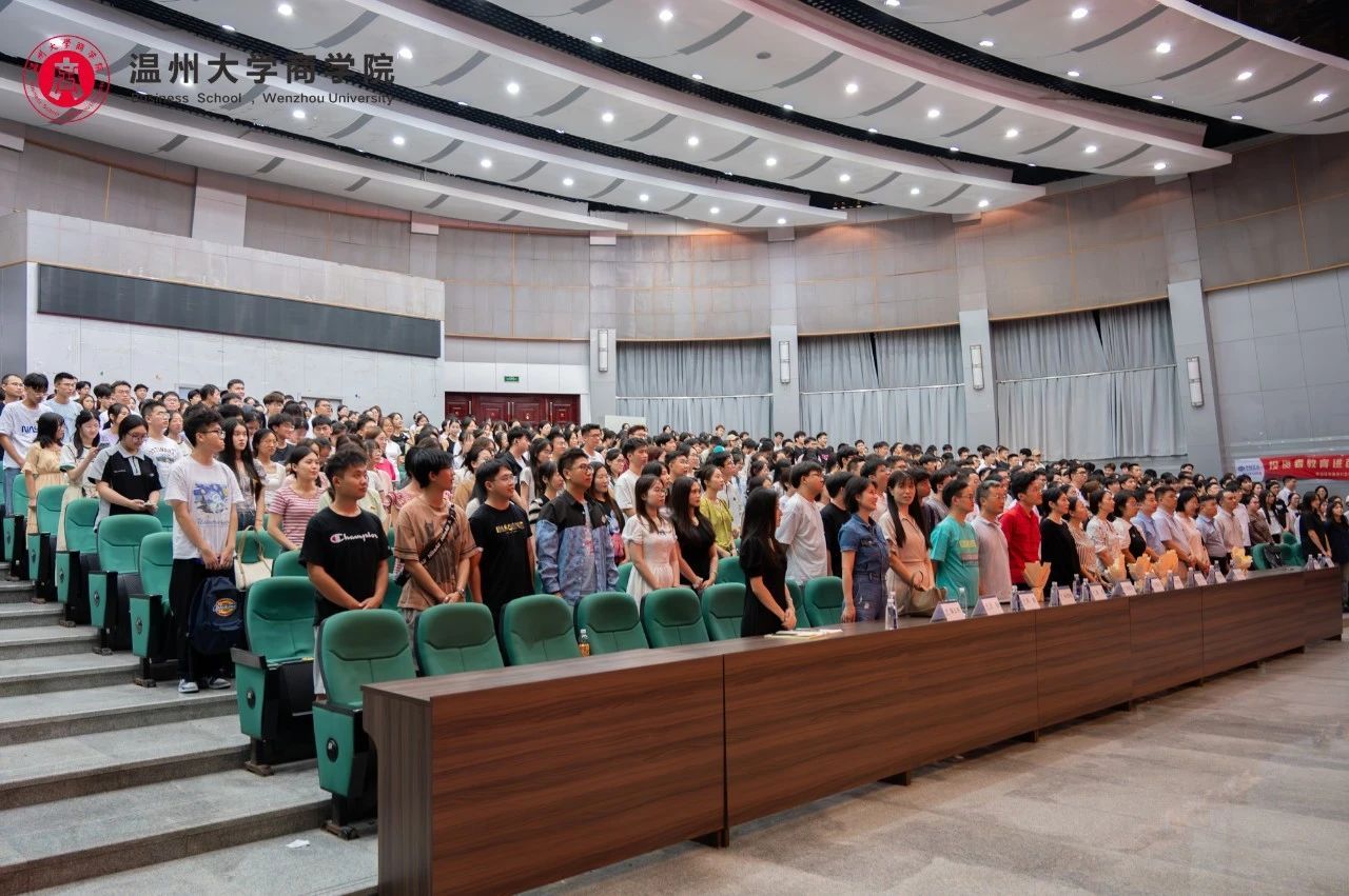 教师代表周祥军老师以亲切而务实的语言,向新生们传授了宝贵的成长经验和心得体会。第一,安全问题。周老师呼吁同学们树立大安全观,珍惜自己和他人的生命安全。第二,新生们应当追求快乐健康的生活,培养良好的心态和体魄,以积极的心态面对大学生活中的挑战与变化,健康与心态是成功的基石。第三,关于学业,他指出,在竞争激烈的当下,同学们应脚踏实地,专注于课程学习,并在感兴趣的领域深入探索。他鼓励大家耐得住寂寞,坐得住冷板凳,为未来的成功打下坚实的基础。第四,周老师还强调了课外活动的重要性,鼓励同学们积极参与各类竞赛和活动,拓宽视野,提升自我。最后,周老师寄语新生们注重品德修养,拥有广阔的胸怀和敢于尝试的勇气。相信在温州大学这片沃土上,每一位新生都能找到属于自己的舞台,成为温州大学最靓的仔!