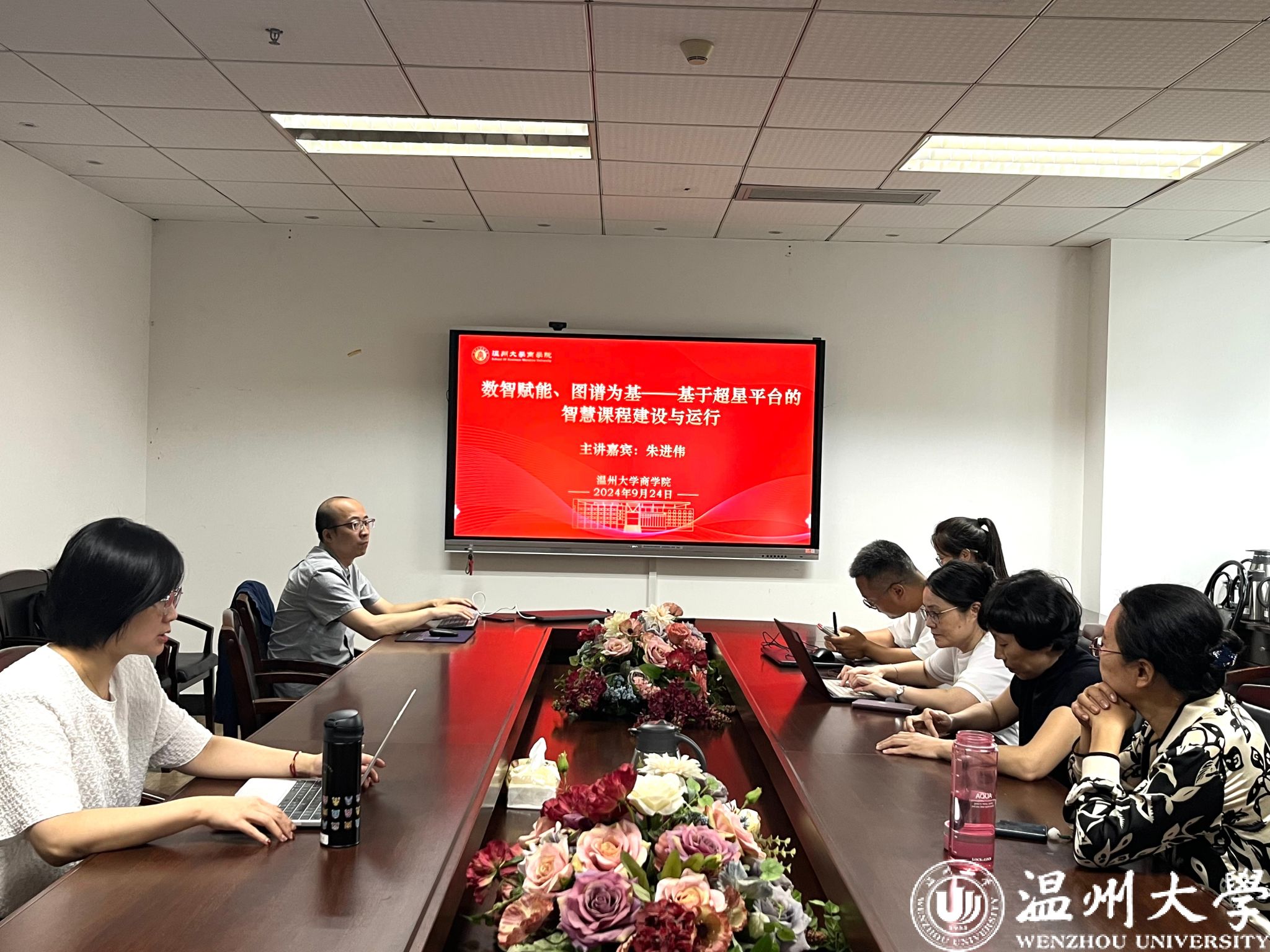 为了响应国家的人工智能赋能高等教育相关政策,积极推动以智助学、以智助教,将知识图谱课程和人工智能技术的结合,打造智慧课程,提升师生人工智能素养,构建虚实融合、“师/生/机”三元交互的教学新范式。2024年9月24日(周二)下午我院在A222特开展“数智赋能、图谱为基——基于超星平台的智慧课程课程建设与运行”的培训,培训特邀请超星集团浙江分公司课程顾问、智慧课程运营负责人朱进伟作专题讲座,我院副院长王露、专业负责人、系主任、院督导及教师代表等参加了会议,会议由王露副院长主持。