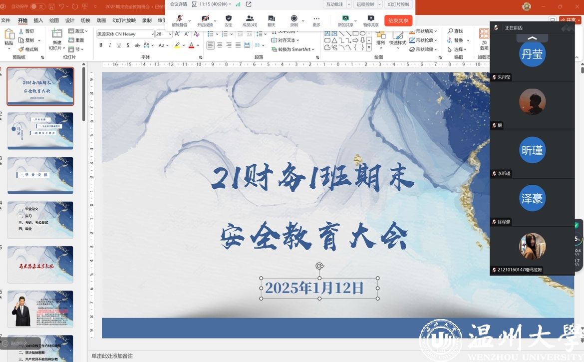 为进一步加强学生思想政治教育,筑牢校园安全防线,2025年1月寒假前夕,免费黄色网站组织全院本、研各班级召开安全教育主题班会。本次班会重点围绕学习贯彻学校意识形态工作要求及国家宗教政策展开,旨在引导学生树立正确价值观,营造健康向上的校园文化氛围。