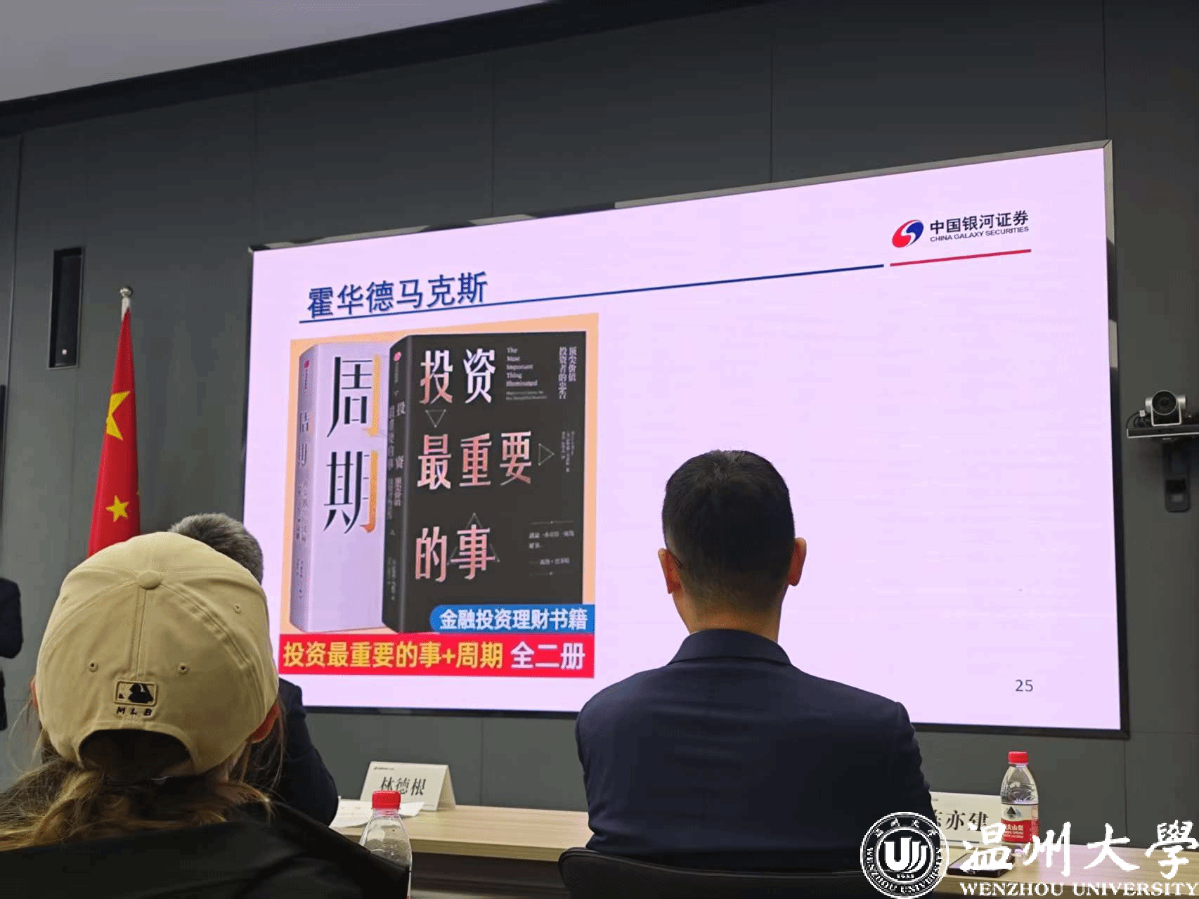 在对中国金融市场的概述环节,银河证券的资深分析师厉云海结合当前宏观经济形势,深入浅出地分析了金融市场的运行机制、主要金融产品以及投资策略。分析师指出,中国金融市场在不断改革和开放的过程中,正逐步走向成熟和规范,为投资者提供了更多的机会和选择。但同时,市场也充满了不确定性和风险,需要投资者具备扎实的专业知识和敏锐的市场洞察力。最后为同学们推荐了《周期》、《逆向投资》、《投资最重要的事》等书籍。
