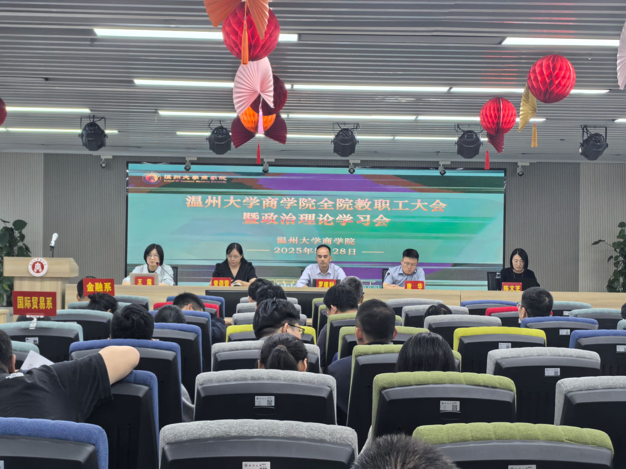2025年5月28日下午,免费黄色网站在商院楼A226仲辉商道讲堂举行全院教职工大会暨政治理论学习会,会议由学院党委书记唐华主持,学院全体教职工参加。